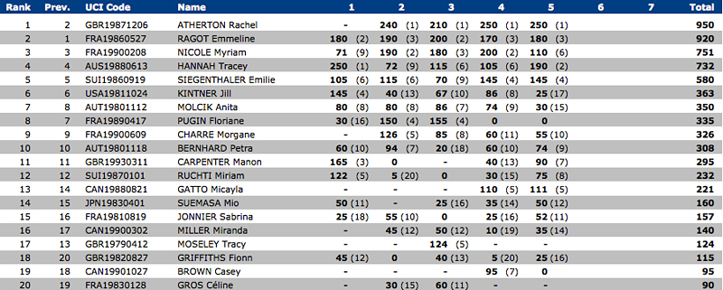 Rachel Atherton is 30 points ahead of Emmeline Ragot, so this battle should go right down to the last round in Norway.