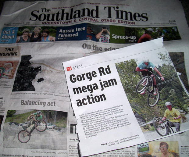 The whole flat made an appearance at the jam, even Adrian who had called in sick for the day; although he was outed by the paper with a large photo of him being ‘sick’ at the dirt jumps. Carrying on with the theme of newspapers I somehow managed on the front page of the Southland Times; surely there was better news to go on the cover…