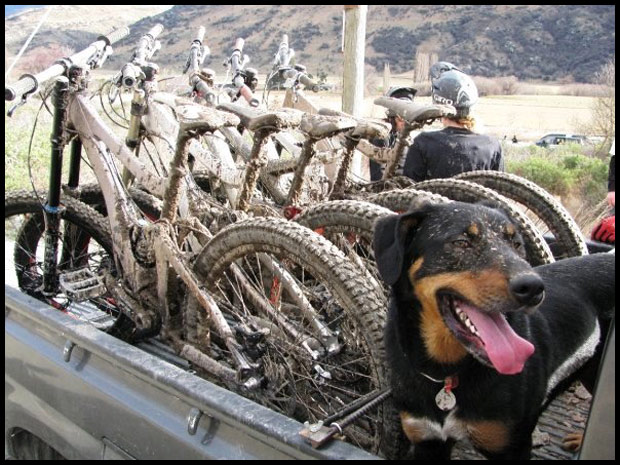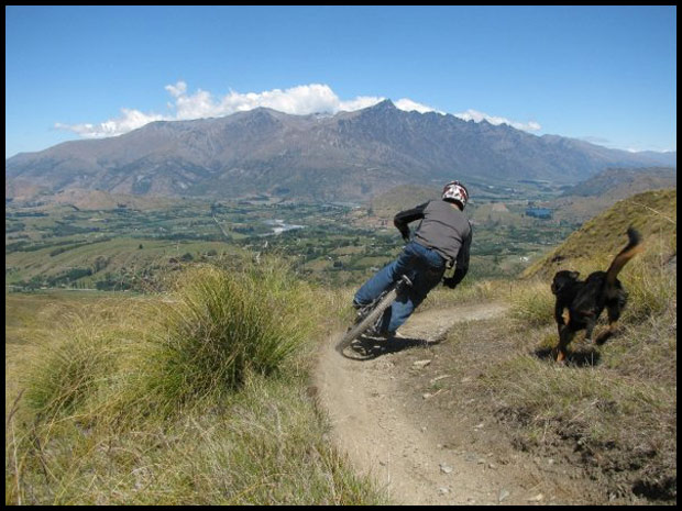 That’s Dorje, Our 4 year old Huntaway hound dog, he’s awesome. We kidnapped him of a farm down by Winton when he was 6 weeks old and now he chases bikes round the hills instead of sheep, He’s super fast, and takes mad short cuts to try & beat you down the hill.