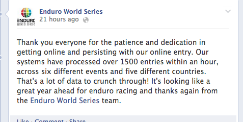 There’s been a lot happening in the world of Dirt, not least the Enduro World Series entries opening to the masses, with reportedly massive interest. Are there any entry spaces left at all? The internet was close to full breakdown we hear!