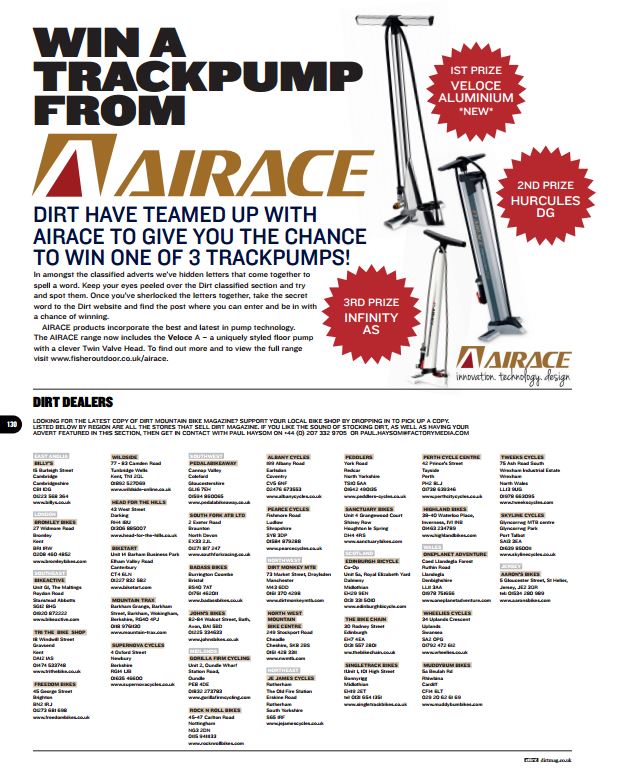 Dirt 137 has hit the shelves this week (subscribers and bike shops should already have their copies) and we’ve teamed up with Airace to give you the chance to win 1 of 3 awesome track pumps! Who doesn’t need a new trackpump?!