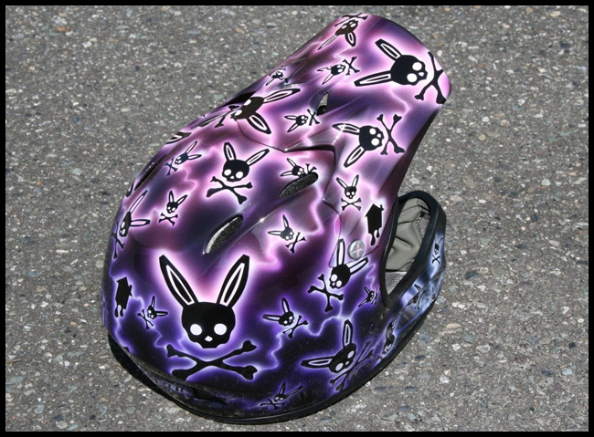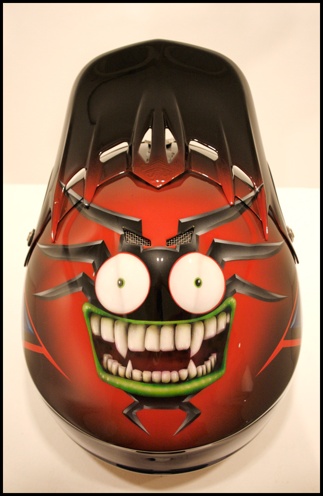 Although I’ve been an artist for pretty much my whole life and worked in many mediums, the first time I started airbrushing was on the very first helmet I painted. I learn something new with each helmet I work on.