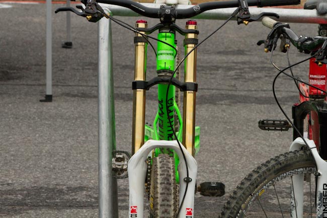 Also here, Jill Kintner of Transition Bikes makes her first appearance at a World Cup Downhill event. Her boyfriend Bryn Atkinson has been coaching her over the winter to bring her up to speed for downhill racing. Previously she has concentrated on 4X racing where she has been very successful to the point of not needing to take it any further. She plans to take that success over to downhill and win the World titles she has in 4X.