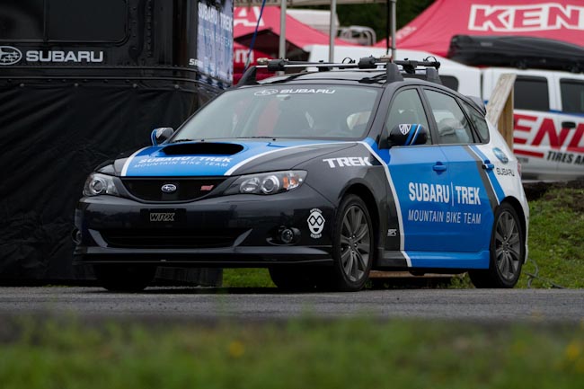 You can tell the XC crowd is in town when they rock up in pimp cars like this one. The Trek Subaru team recently went through a re-branding process when Trek Bikes incorporated Gary Fisher into the line up. The team stays the same as far as roster and staff go but everything has been re-branded including the team Impreza.