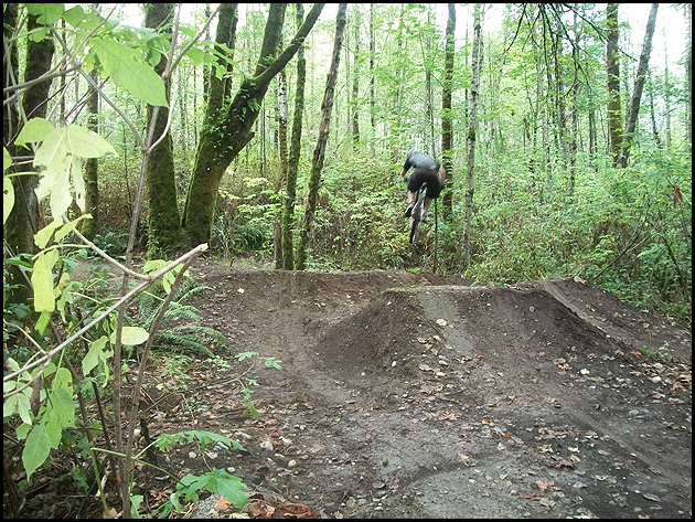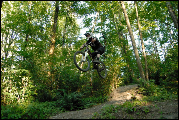 Derek says: “We have a riding spot in a local forest called Invergarry. It’s located in Surrey, BC, Canada. This spot was hand-built by my friend Jordan and I. We now have twenty-two jumps in this small area. Everything from small table tops for the young riders to the latest ‘big line’ of twenty foot gaps. There are six main lines to hit with plenty of opportunities to transfer and add flair to the jumps. I hope the readers enjoy our hard work. More info here.
