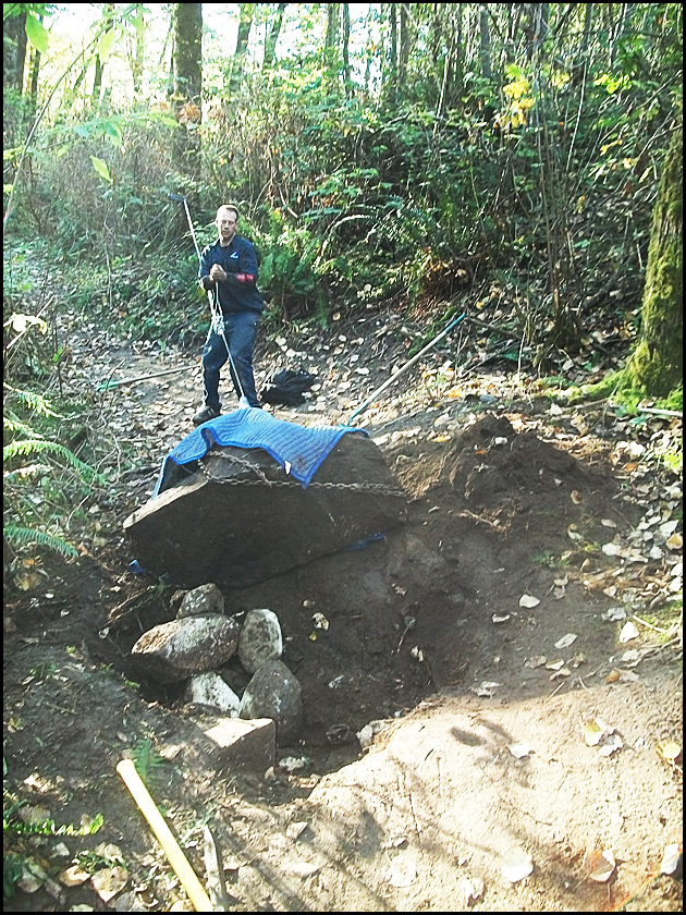 Derek Kost and his friend Jordan have been busy digging in Surrey, BC, Canada. No sign of any snow in the shots yet but just take a look at the size of that rock that they’ve shifted, that’s got to be in the running to win the “biggest-rock-shifted-by-hand” competition.