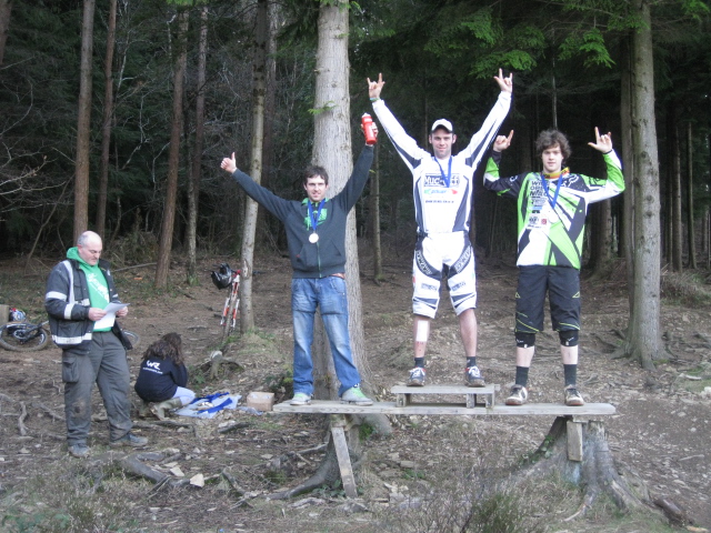 Chazz on the far left, the man behind the scenes, along with many helping hands from www.woodlandriders-racing.co.uk that lay on the races for us. Ash Mullane in 3rd (left), Jay Williamson 2nd (right) and the Deakinator aka Ben in 1st (get some UCI points, have a go at a WC) great day out, short track local racing, real close times, and laid back atmosphere makes for fun racing.