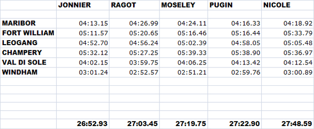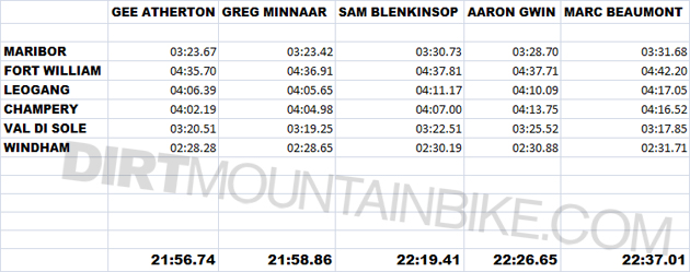 The top five times mirror the overall World Cup positions. After nearly 22 minutes of racing 2010 series winner Gee Atherton beat Greg Minnaar by just 2.12 seconds.