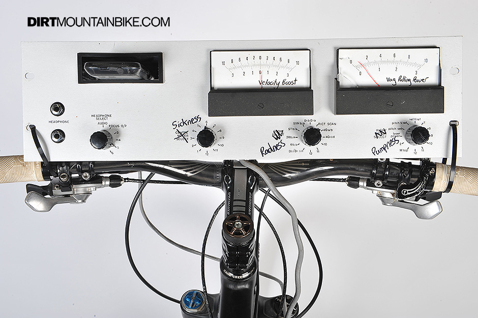 The true flexibility of this system is unleashed by the Forward User Control Konsole (F.U.C.K.) which is seen above. This is where you can optimise each of the three main settings, and keep an eye on some vital ride analytics. Ivor felt that not even a Spinal Tap esque ’11’ was rad enough for this system so the dials on this go all the way up to 12! To fully understand the capabilities of the system Ivor reckons you’ll have to spend approximately two and a half weeks reading the manual, but he says the results are well worth it. The Sickness, Radness, and Pumpness dials all control different aspects of the ride, and then for those who want an unlimited ability to optimise you can insert any smart phone (Iphone, Android, or Windows) into the dedicated slot and tweak settings infinitely. The smart phone app also allows you to download the abilities of all the world’s top riders so if you want to be able to whip like Brendan, corner like Sam Hill, or scrub like Gwin all that is possible with just the click of a few buttons.