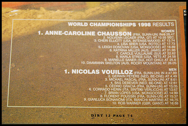 I had a root around in the old Dirt Magazine archives and found the results from the 1998 Champs at Sainte Anne.