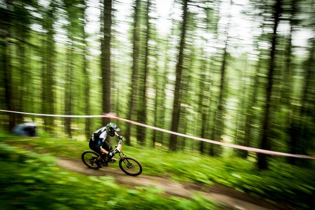 Stage 1/2 started by using the exact same start as the World Championship DH skiing course, which was pretty cool. From the top of the Gondola it made for a brutally steep, bike over shoulder hike, to the very top for our first two timed stages. The course was fairly flowy and fast, and I thought it was very cool they just taped virgin trail through grassy fields and used some very cool natural features of the terrain. There were so many dips and holes and natural berms and it was super fun…the sort of trail I would absolutely love to get a full days riding on to get to learn properly and really get up to speed. From the top natural grassy stuff, it went in to some very rough and unused single track that had okay flow. The track eventually joined back into some DH type switchbacks near the end and finished on part of the XC world cup track’s descent from last year. I enjoyed the stage and felt confident on it.