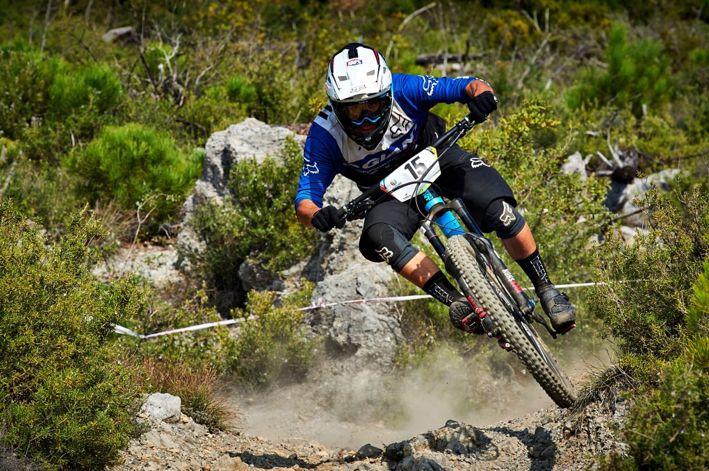 We’ve been out on course all day – that is, in between coffee stops (when in Italy etc.) – and have been witness to some incredible displays of technical riding skill on what is a test of riding prowess to push every rider to the limit. The day of extremely technical riding and cramp-inducing transfer stages had a distinctly French stamp on it, with seven of the top ten riders flying the blue, white and red flag. Watching riders such as Yoann Barelli, who finished the day in the lead, and compatriot Florian Nicolai, sitting in fifth, turn what looked like near-impossible rocky challenges into little more than a walk in the park was truly a sight to behold.