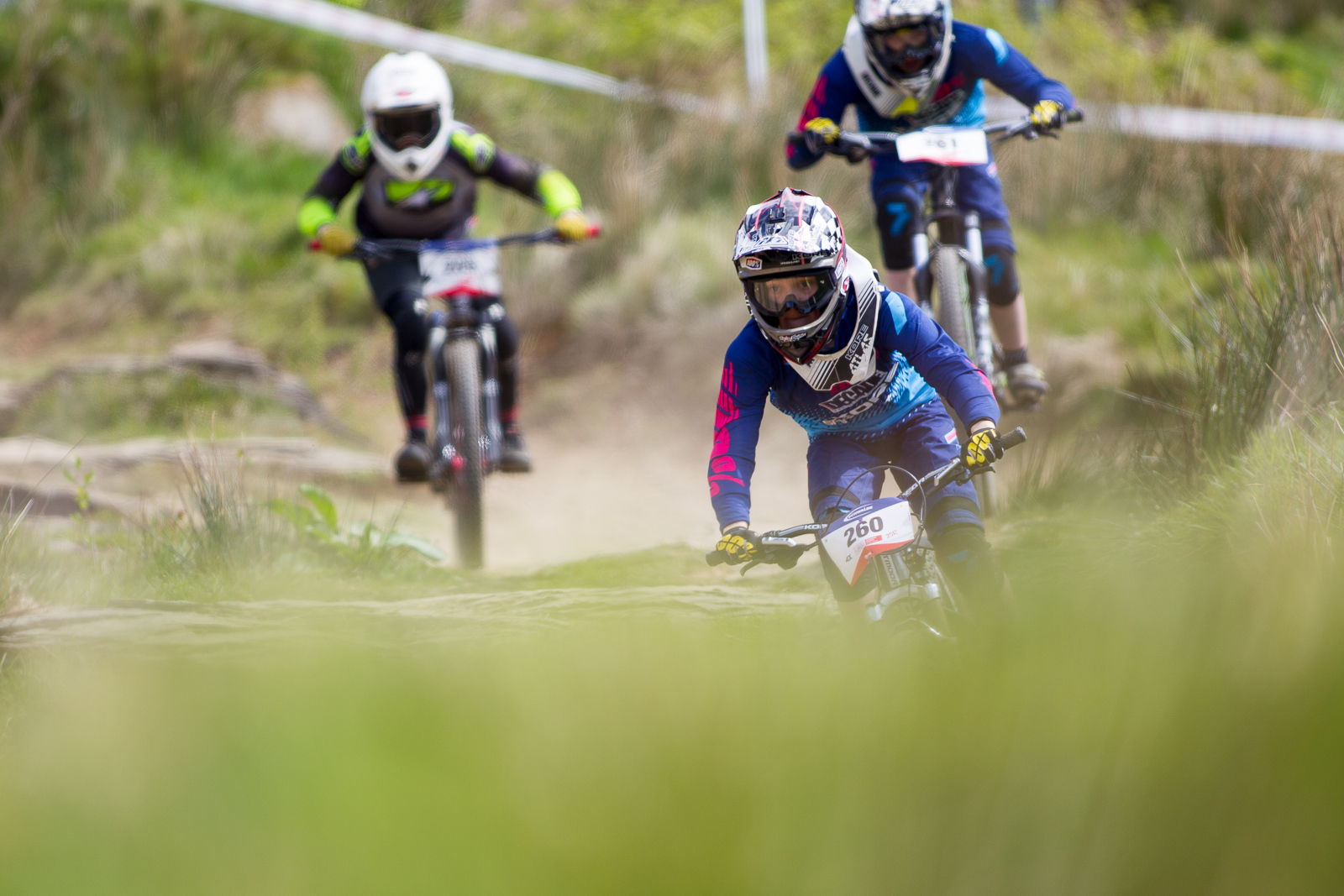 As always, the young shredders went out all guns blazing. After snapping his mech hanger in practice, and converting his bike to single speed, Fred Hunt put up a good fight but couldn’t get any further than 4th place. Louie Partridge was looking fast all weekend throughout practice and motos. He finished with a respectable 3rd place, behind William Chater who took another 2nd place. In a league of his own Cornish weapon, Zac Hudson continued his perfect season, not losing a single lap all day.