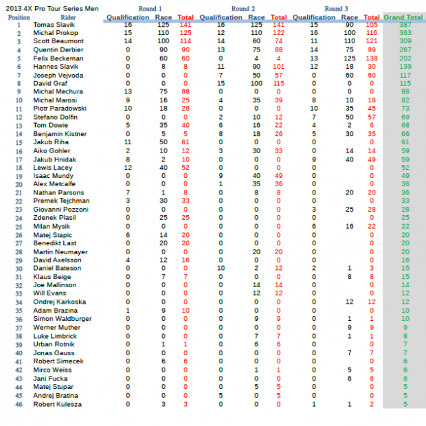 The 4x Pro Tour has recently introduced it’s own ranking and Pro Tour points structure. Qualifying points are awarded to the top 15 fastest qualifiers and Pro Tour Points are awarded to the Top 64 finishers at each race.