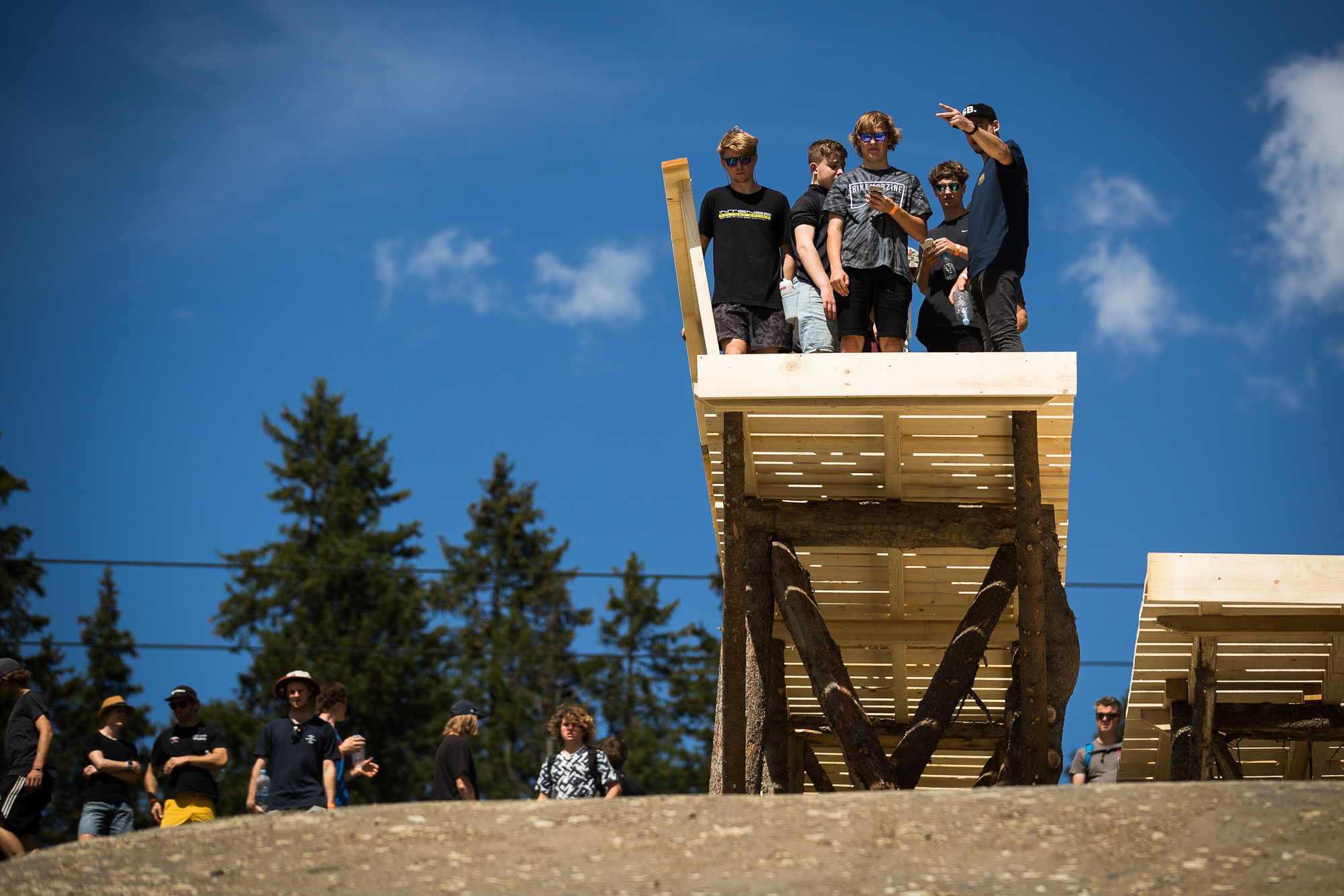 The big news comes at the bottom of the course with a new bit of woodwork that only seems to have been finished this morning. Riders are estimating it at 12 metres – safe to say it wouldn’t be out of place in Hardline.