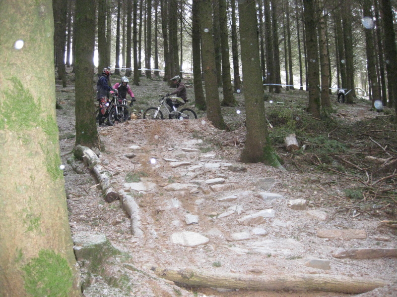 Right then, off we go. The conditions today where horrible, several riders called off due to bad weather, the uplift still ran. This is from my viewpoint, those that know me, know I am a wheels on the ground type of rider, I have raced the Combe many times, and was interested to see what had been done up there. The old NPS start has been used a few times with the old South West series, but mostly we started around the new double, or over in the plantation (the bluebell start).