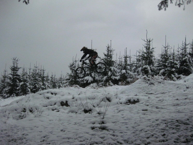 I think this is Seb from www.rootsandrain.comgoing off the big ramp. The snow/ice doesn’t help but you can see the new ramp is built on top of the old one, and those that have been before should be able to work out just how much bigger the jump is now. Some tufts of pine branch mark where the low roll-able ramp exits.