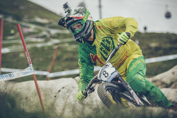 Even though Aaron Gwin looked fast on track it was his team mate Troy Brosnan that took the qualifying win and 50 points to boot. He has a lot of gas for someone a lot smaller than other riders but he is light and knows where to make it count on a long track like this. Fastest in timed practice Danny Hart was just behind Brosnan with the flat pedalled Sam Hill creeping closer to his wins back in 2006 and 07′.