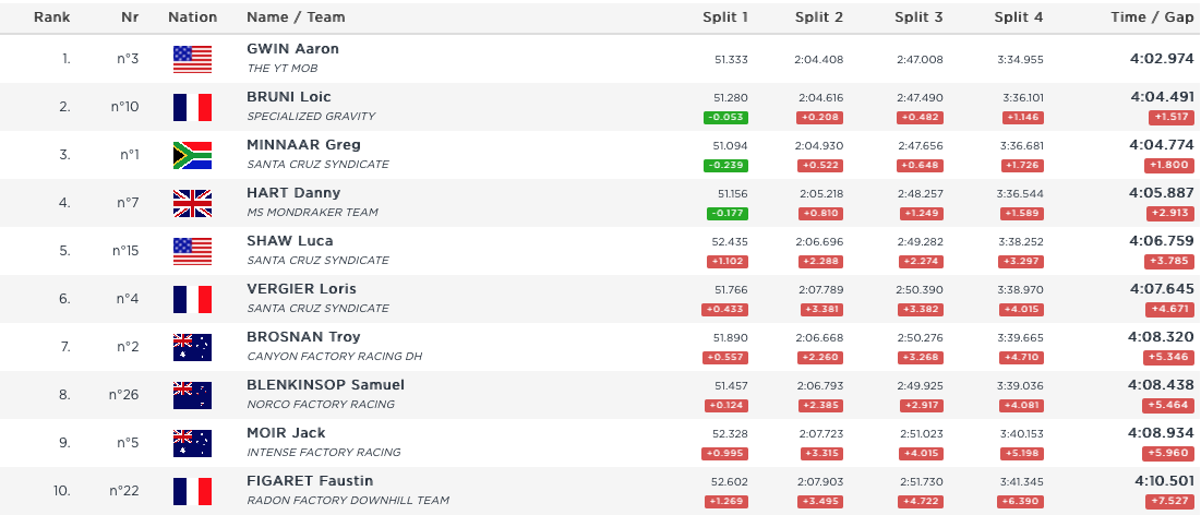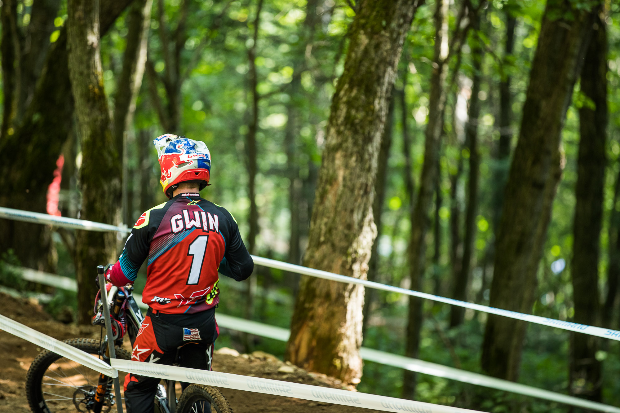 Aaron Gwin put down a storming run to finish on top in qualifying today in Mont Sainte Anne.