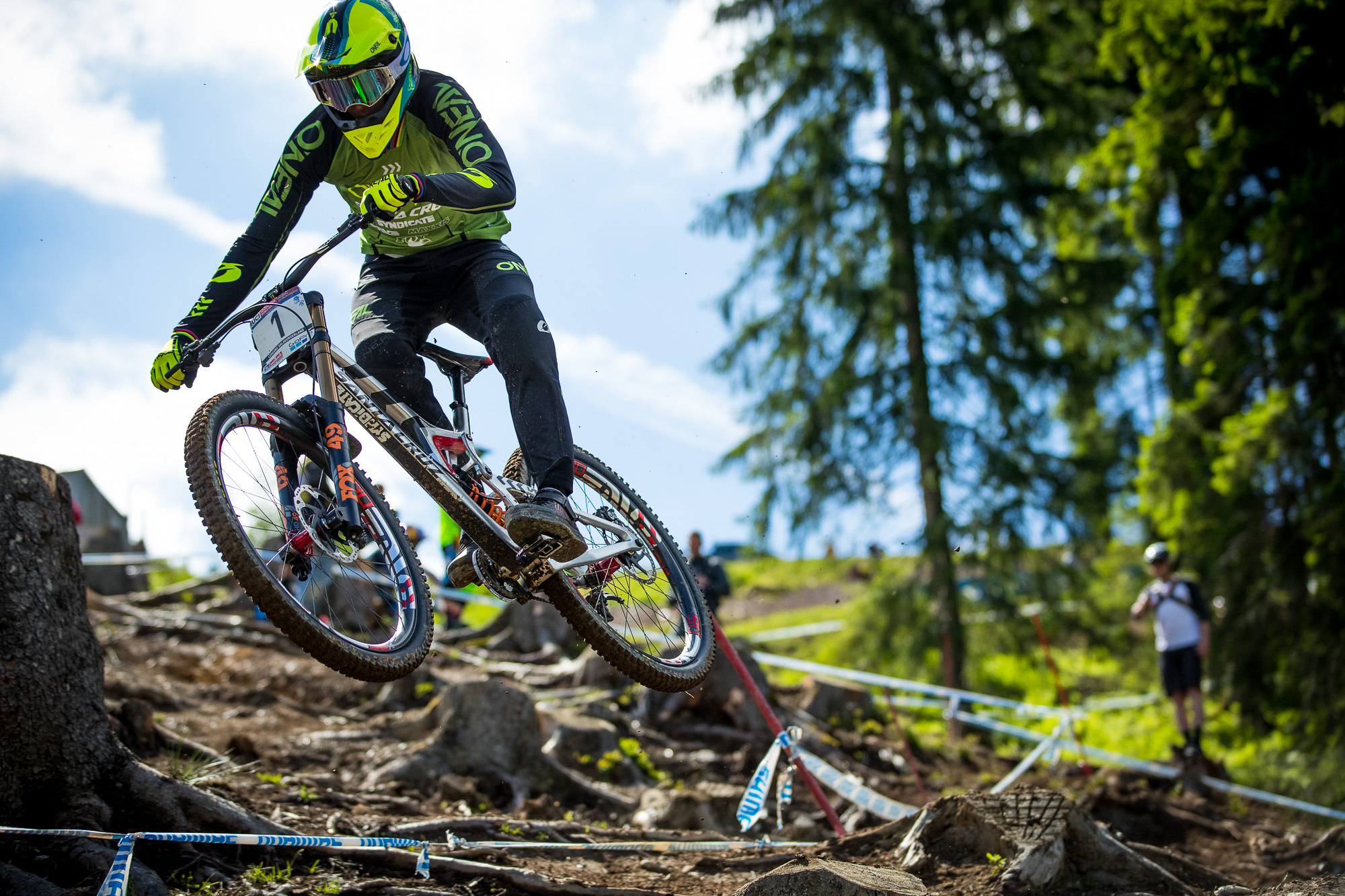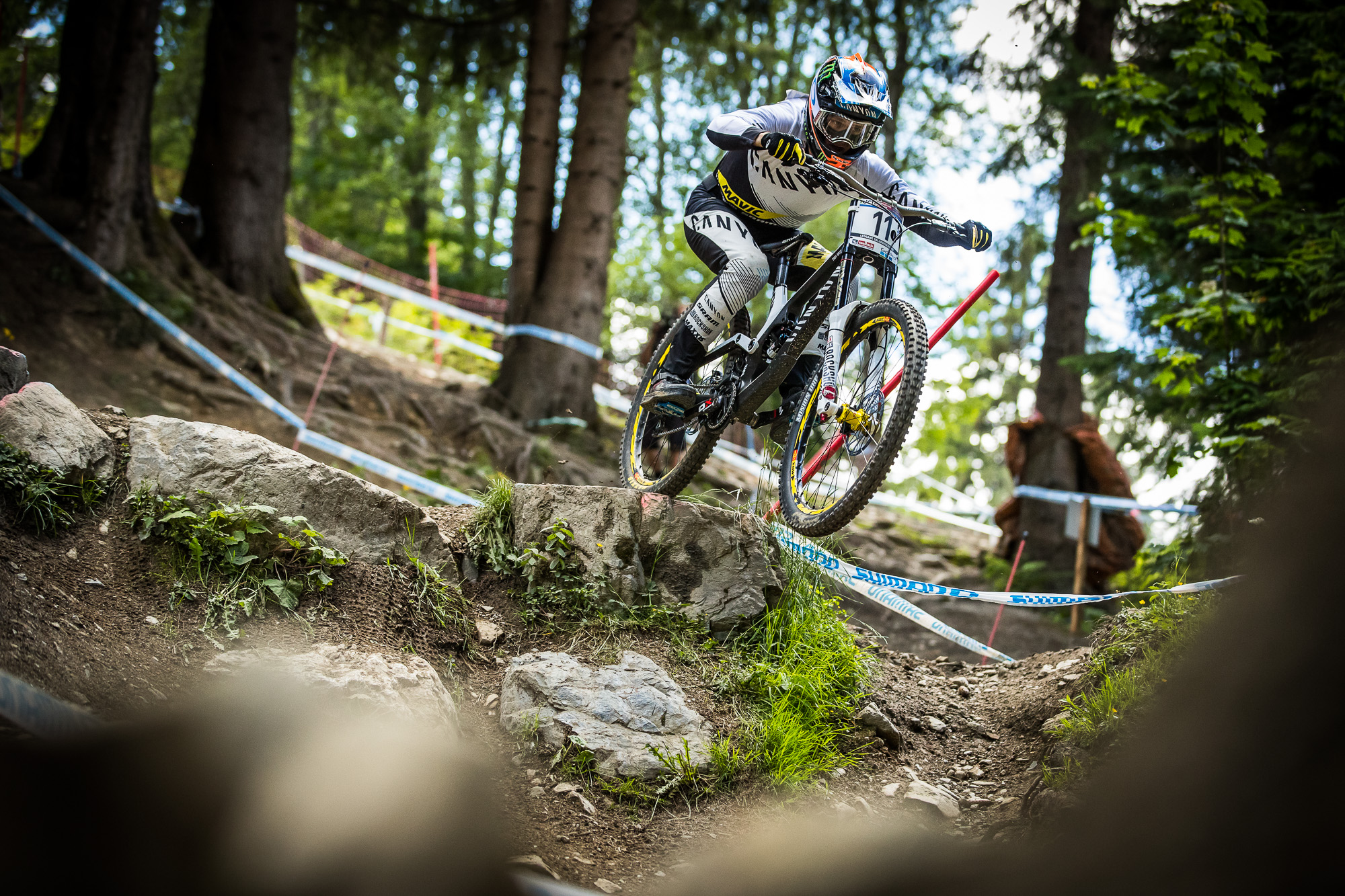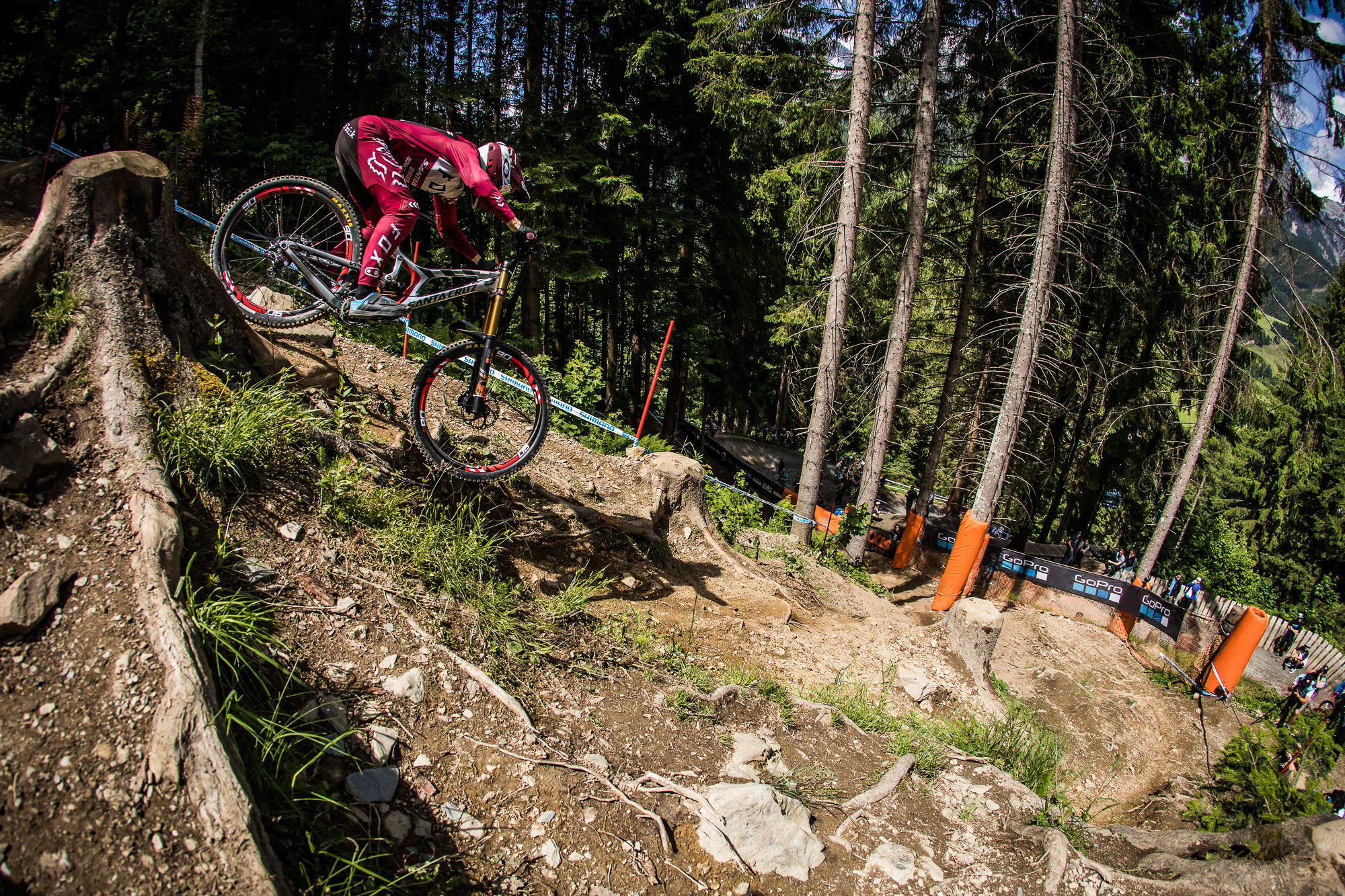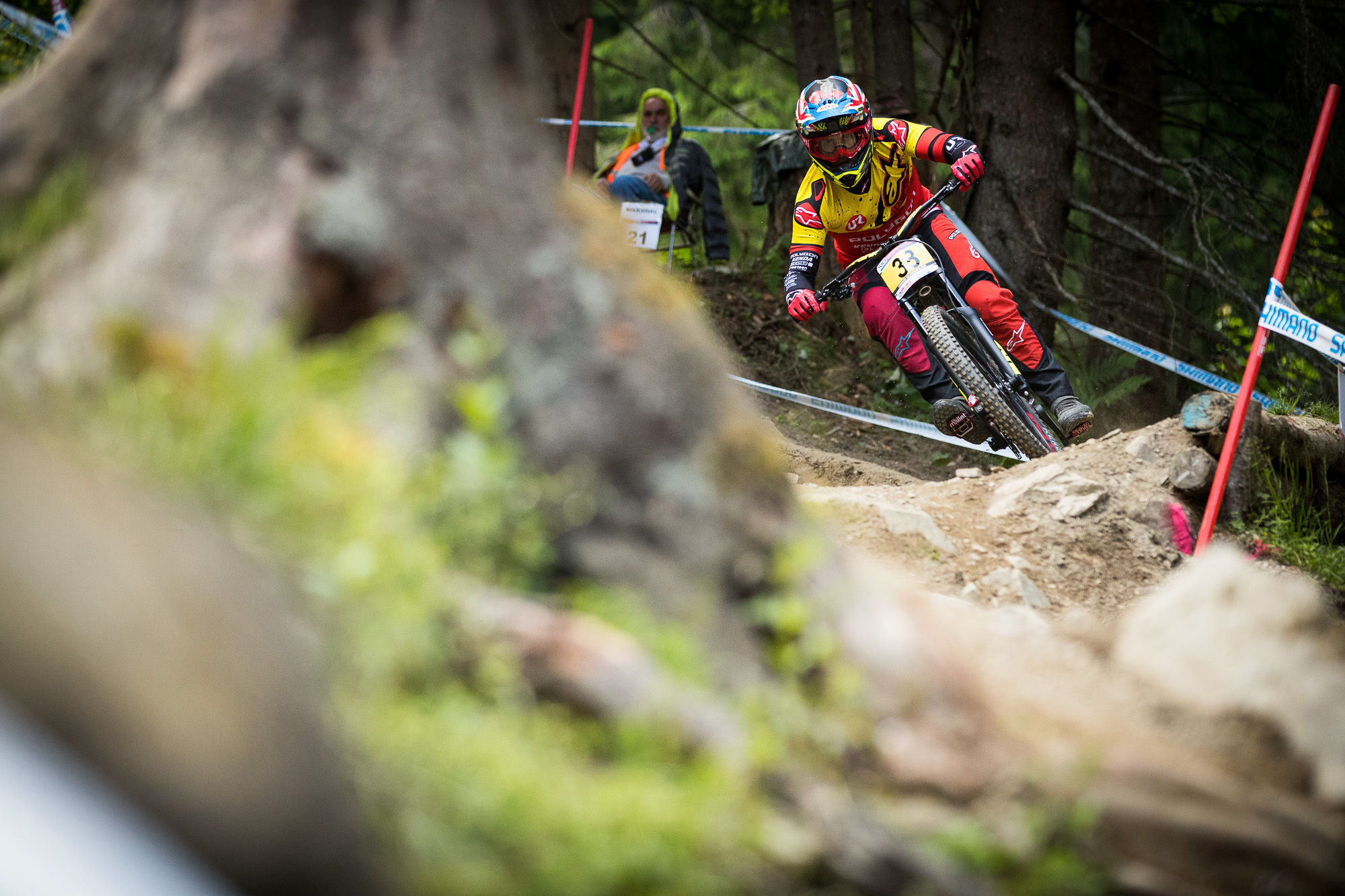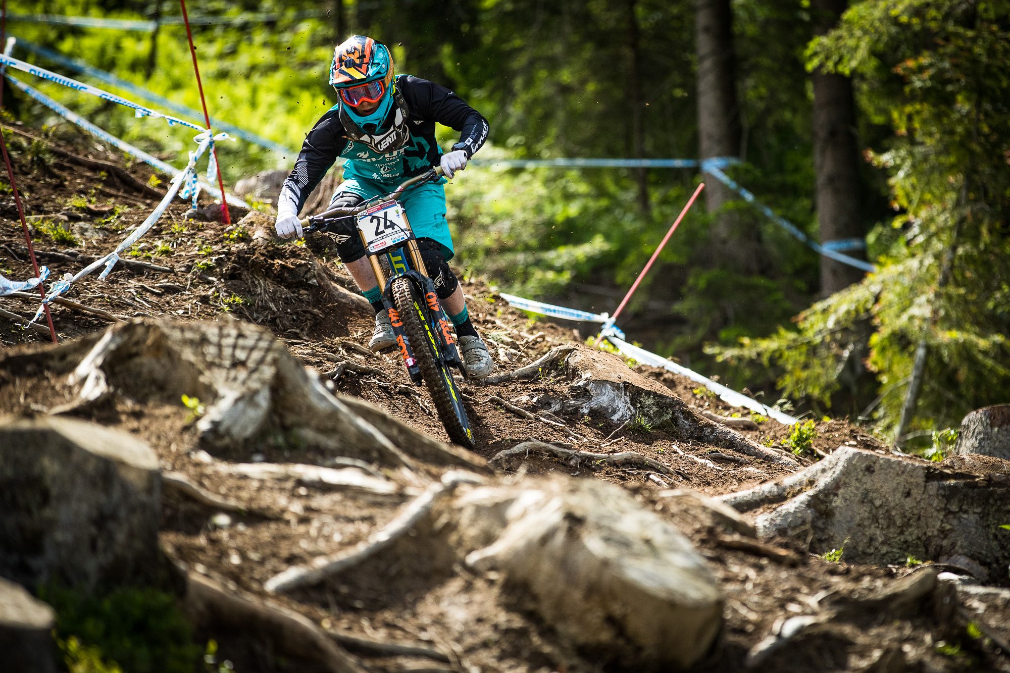 All eyes turned to Gwin at the top of the hill. Despite being down after two sectors, Gwin smashed the jumps and the bottom. He made a couple of mistakes in the woods but still finished 1.4 seconds up on Vergier to claim his third win in a row at Leogang.