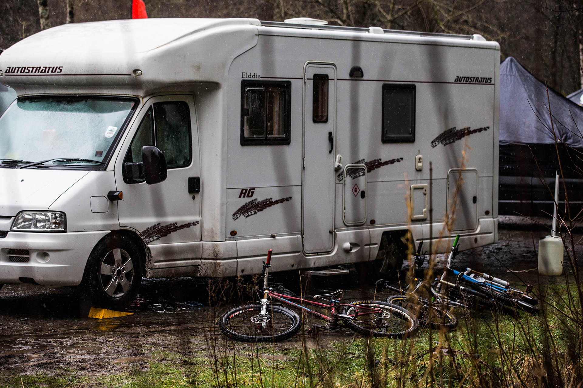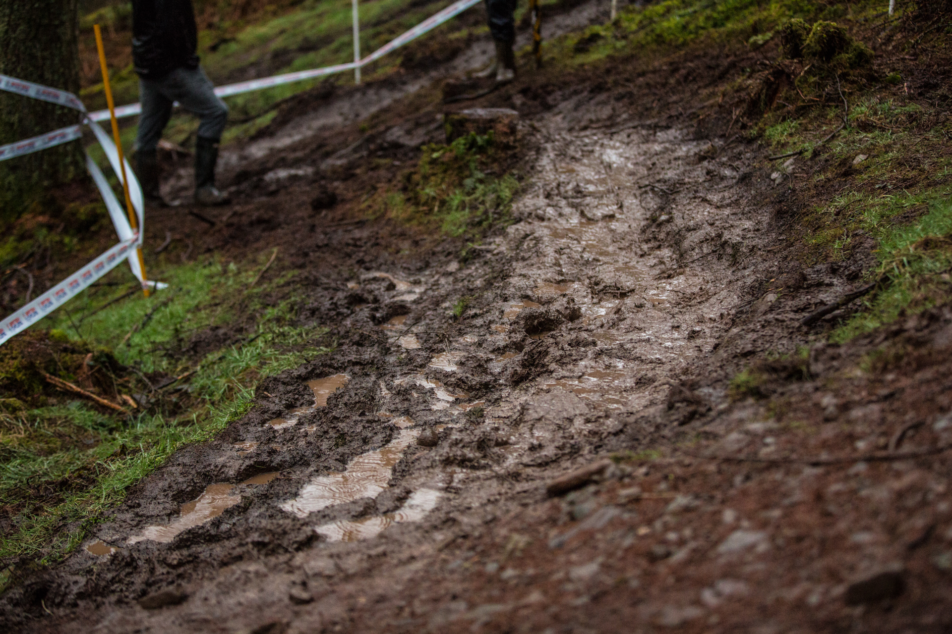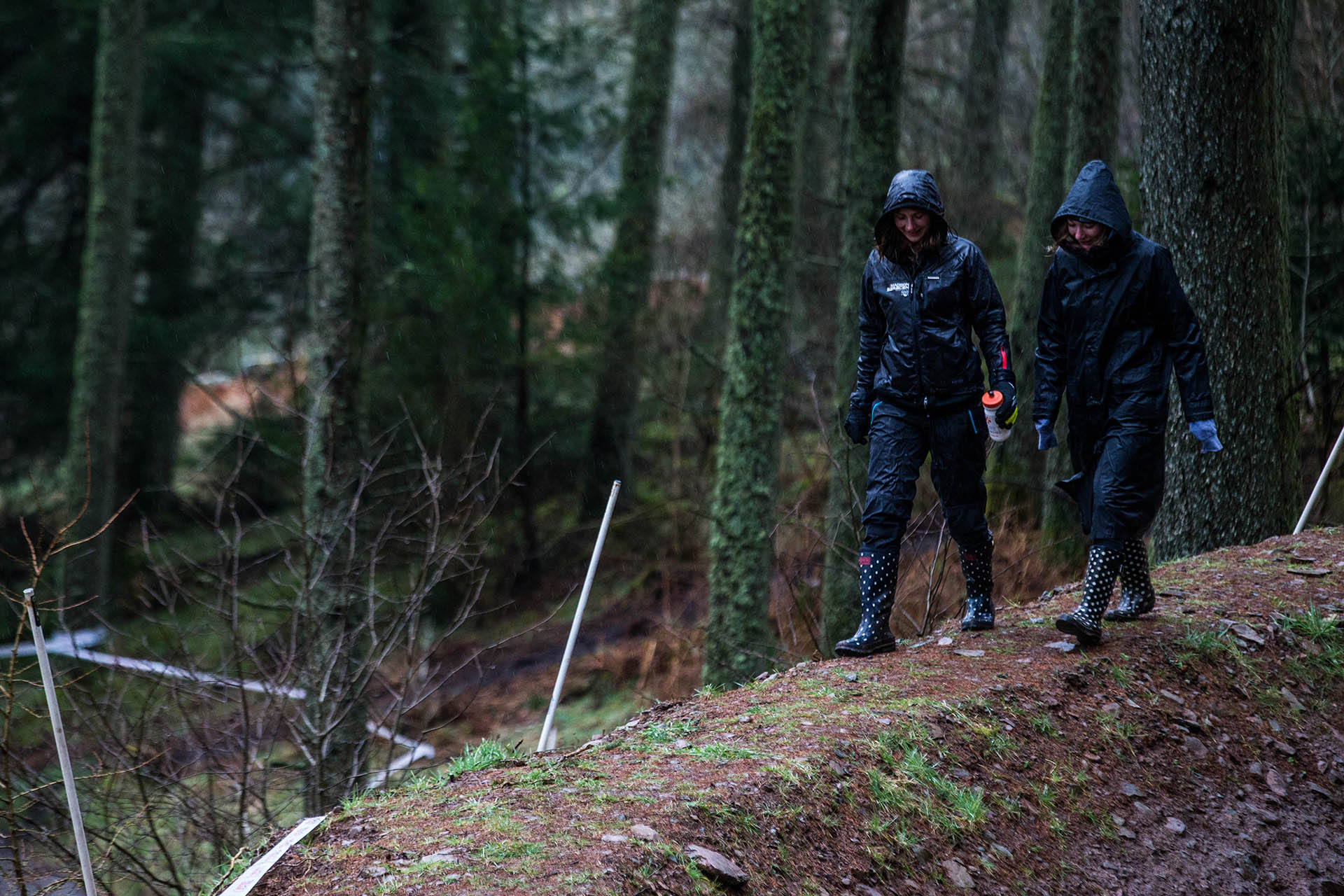 Simon Nieborak and Ian Lean are braving the (frankly horrific) conditions up in Ae Forest, Scotland, to cover the first round of the 2016 Shimano British Downhill Series for us. You’ll see a whole host of photos and stories coming out of the event over the next week, but to kick things off here is a quick check-in from the bog trot that was Friday track walk.