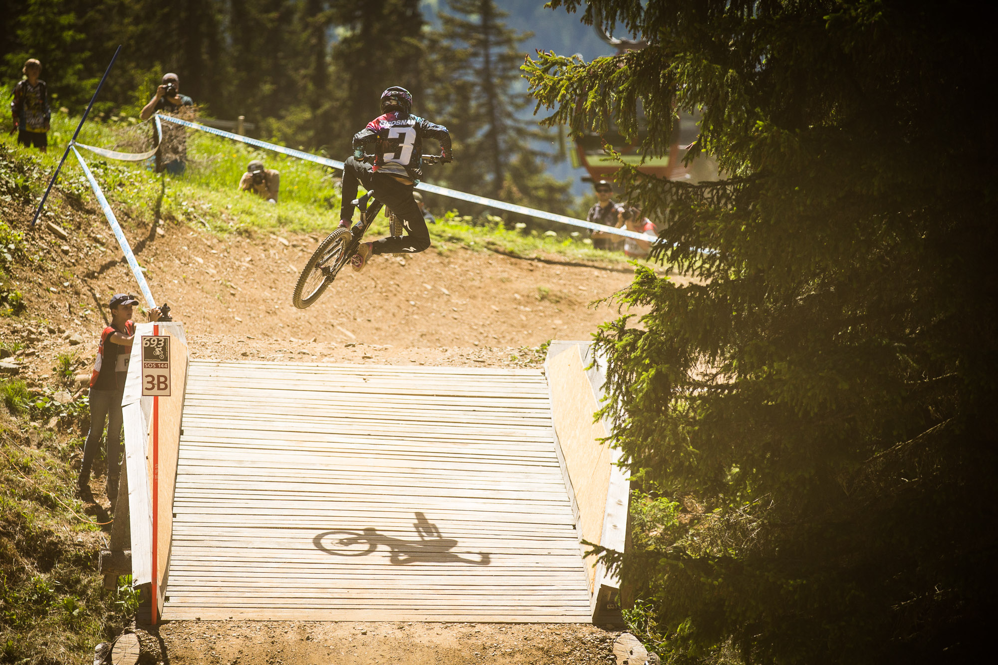 The train journey from Zurich airport up to the town of Chur (some 20 minutes by car from Lenzerheide) is nothing short of breath taking. Such mountains, such scale. I felt a mixture of awe, joy and fear looking up to towering peaks all around me as I chugged efficiently along to my destination. But I’m not there to look at the scenery, I’m here to watch a mountainbike race… pure downhill.