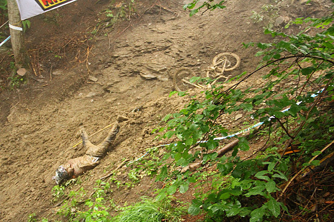 The wall ride left hand corner on the lower woods section was carnage this morning with a lot of this sort of thing going on.