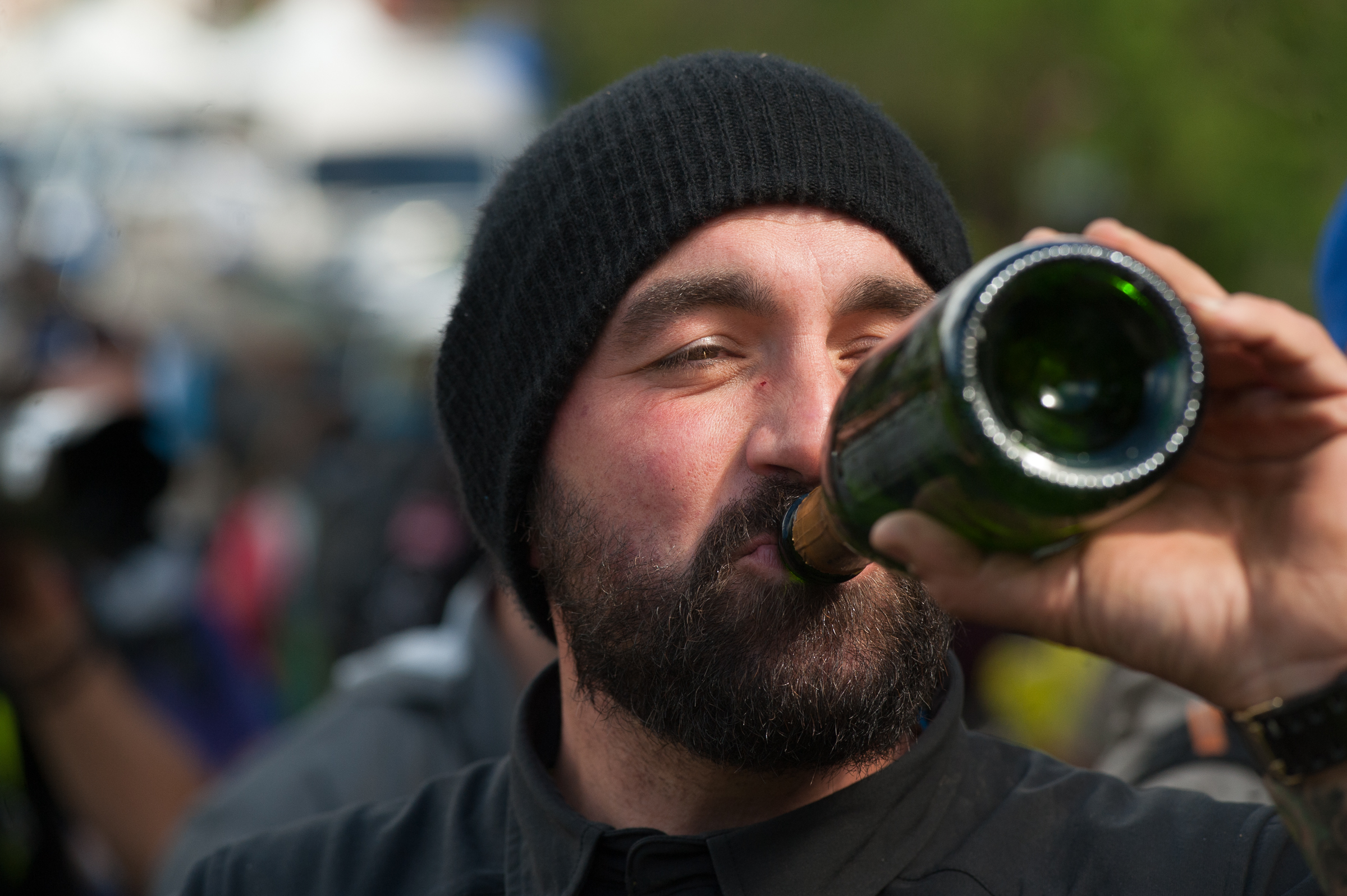 Brendan's mechanic, Ben swigging back on some podium Champagne.