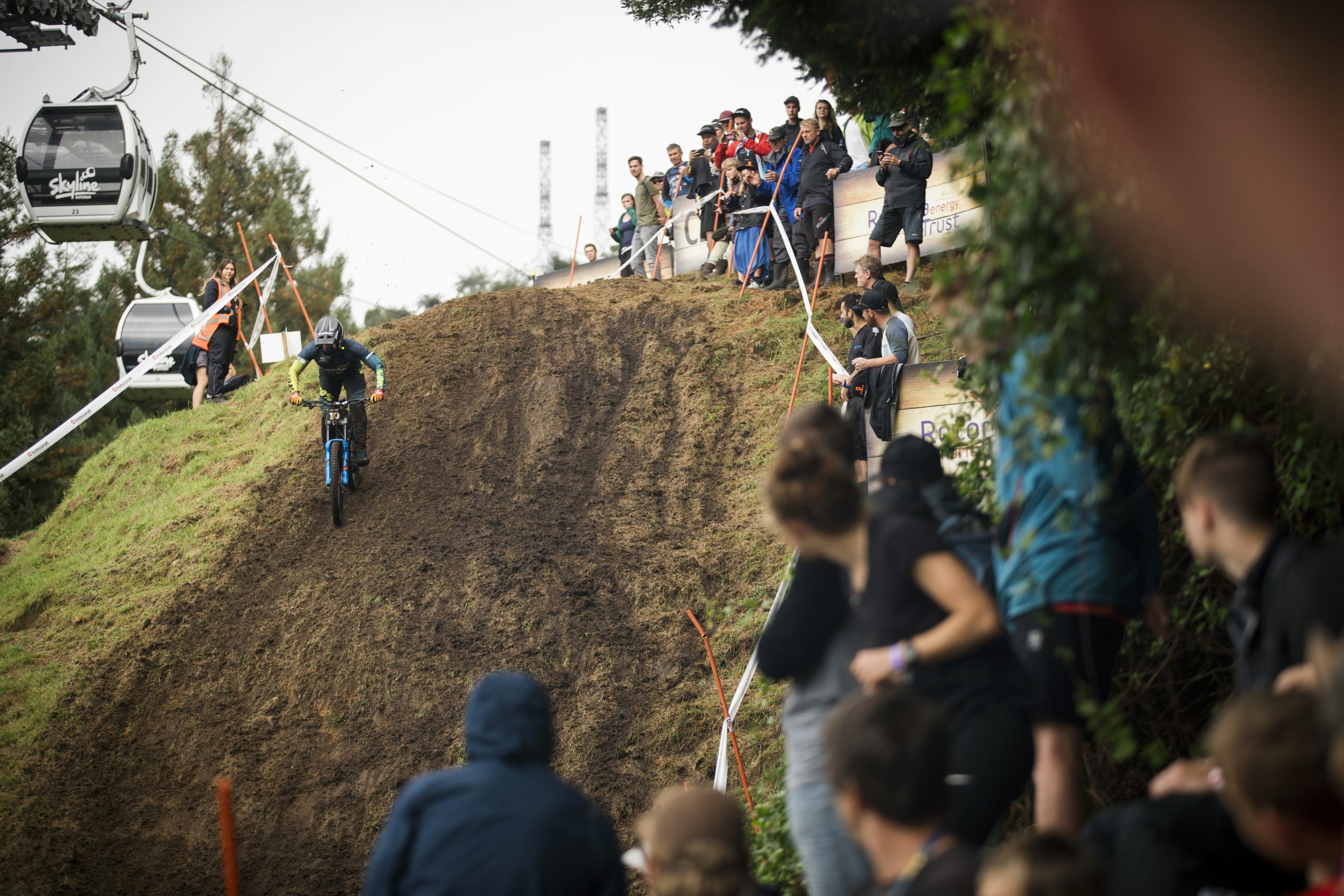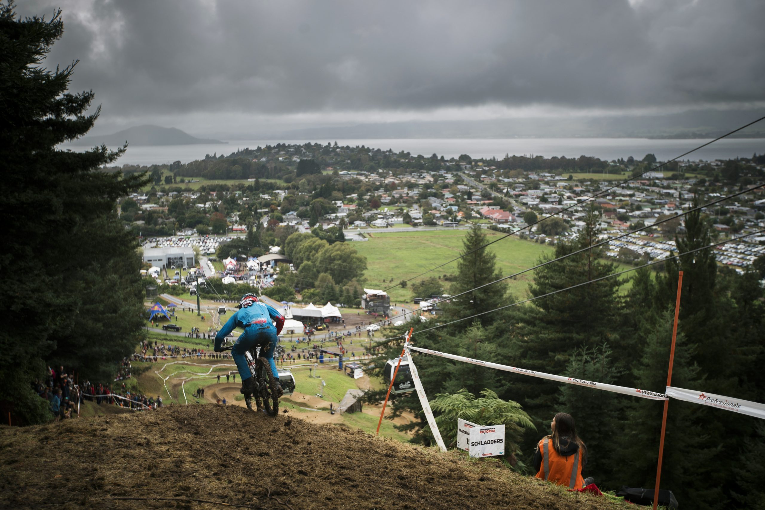 After yesterday’s slopestyle turned slopstyle, the writing was on the wall for the downhill and a saturated track was a rude wake up call for those who had been enjoying a dusty off-season in the summer hemisphere.