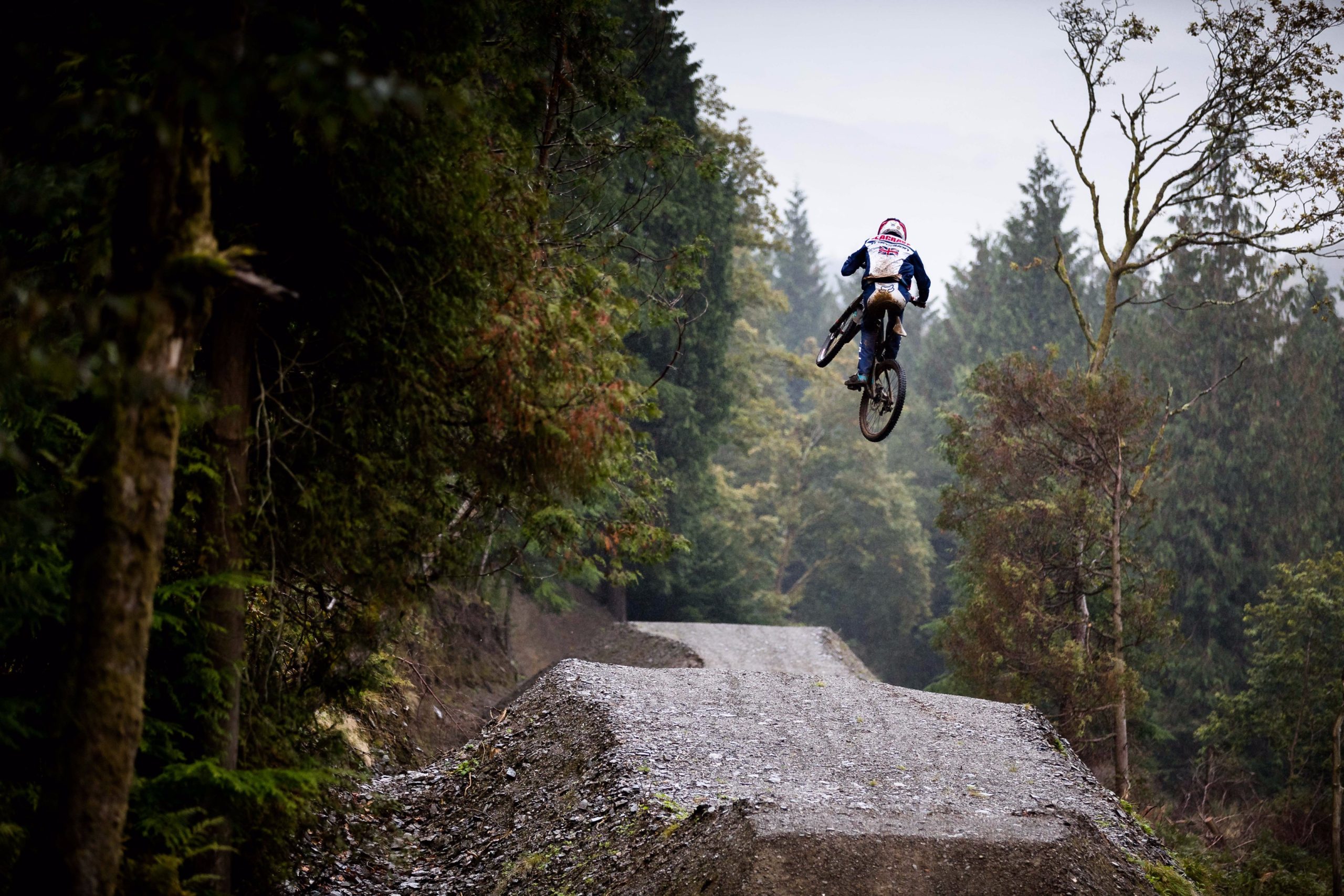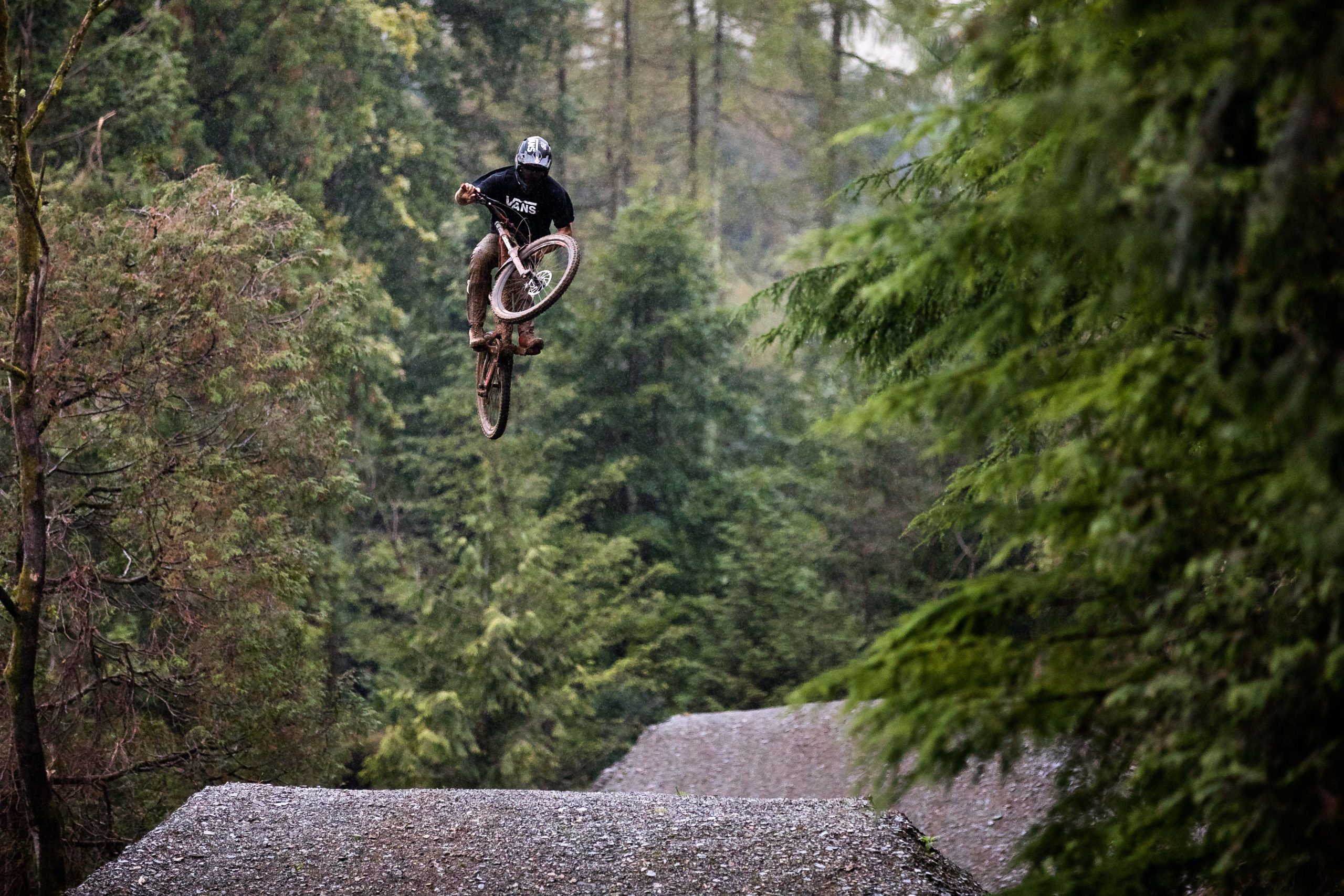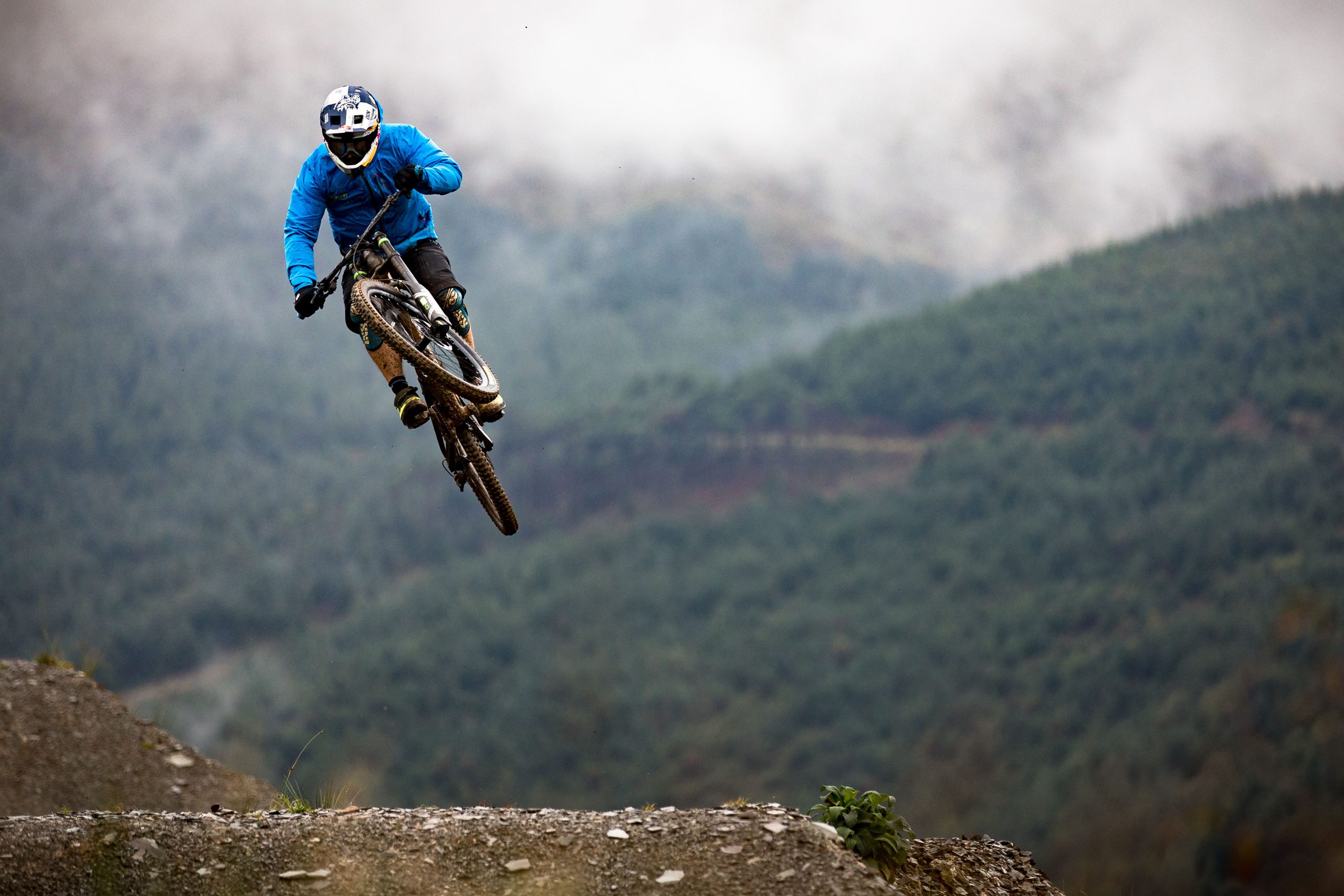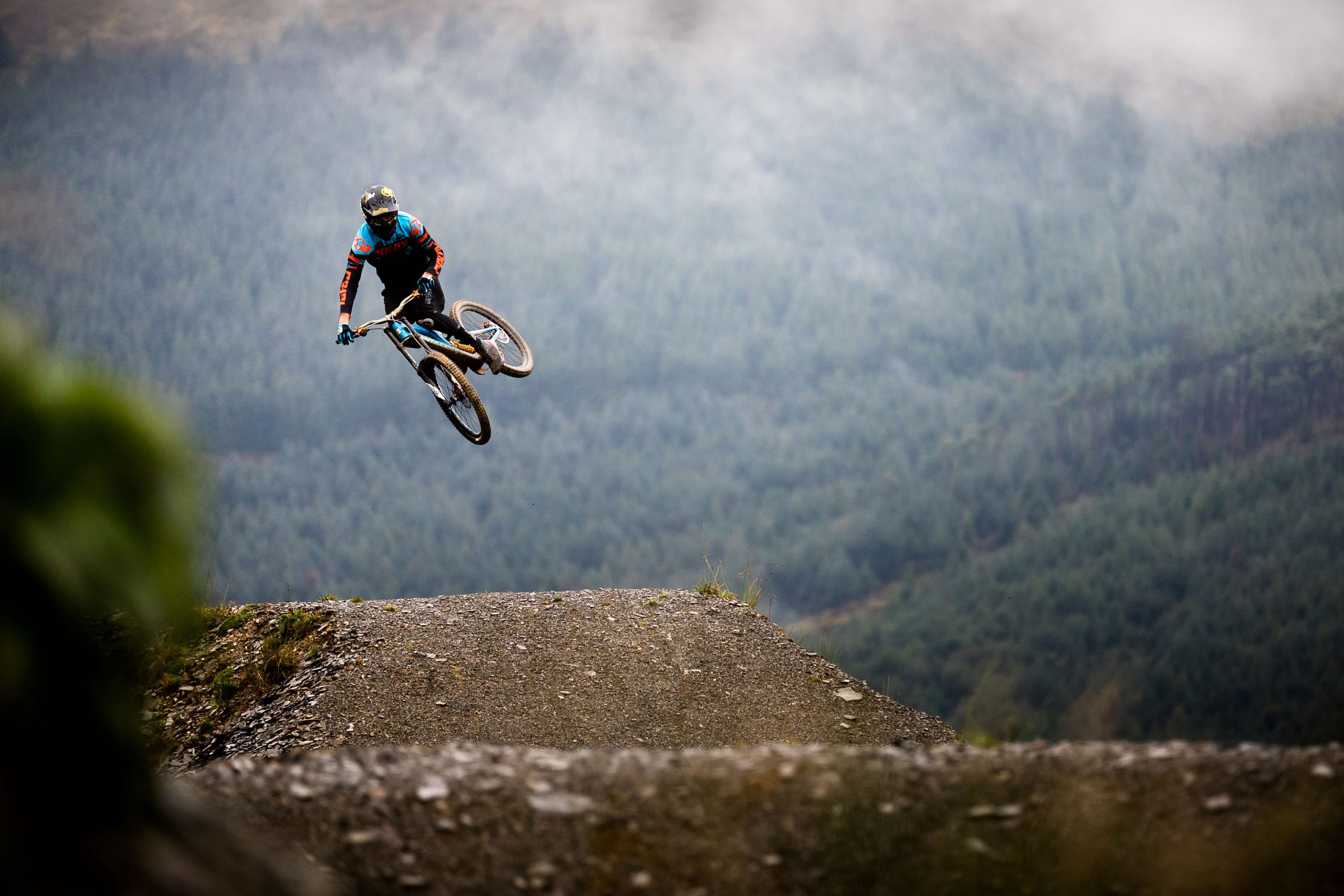 In North Wales, Dan Atherton has been tweaking his monster course to be ready for the first sends on Friday. As a warm up, he invited the racers to his other creation in the DyFi forest to get used to the wet, slatey conditions and the feeling of riding big jumps again.
