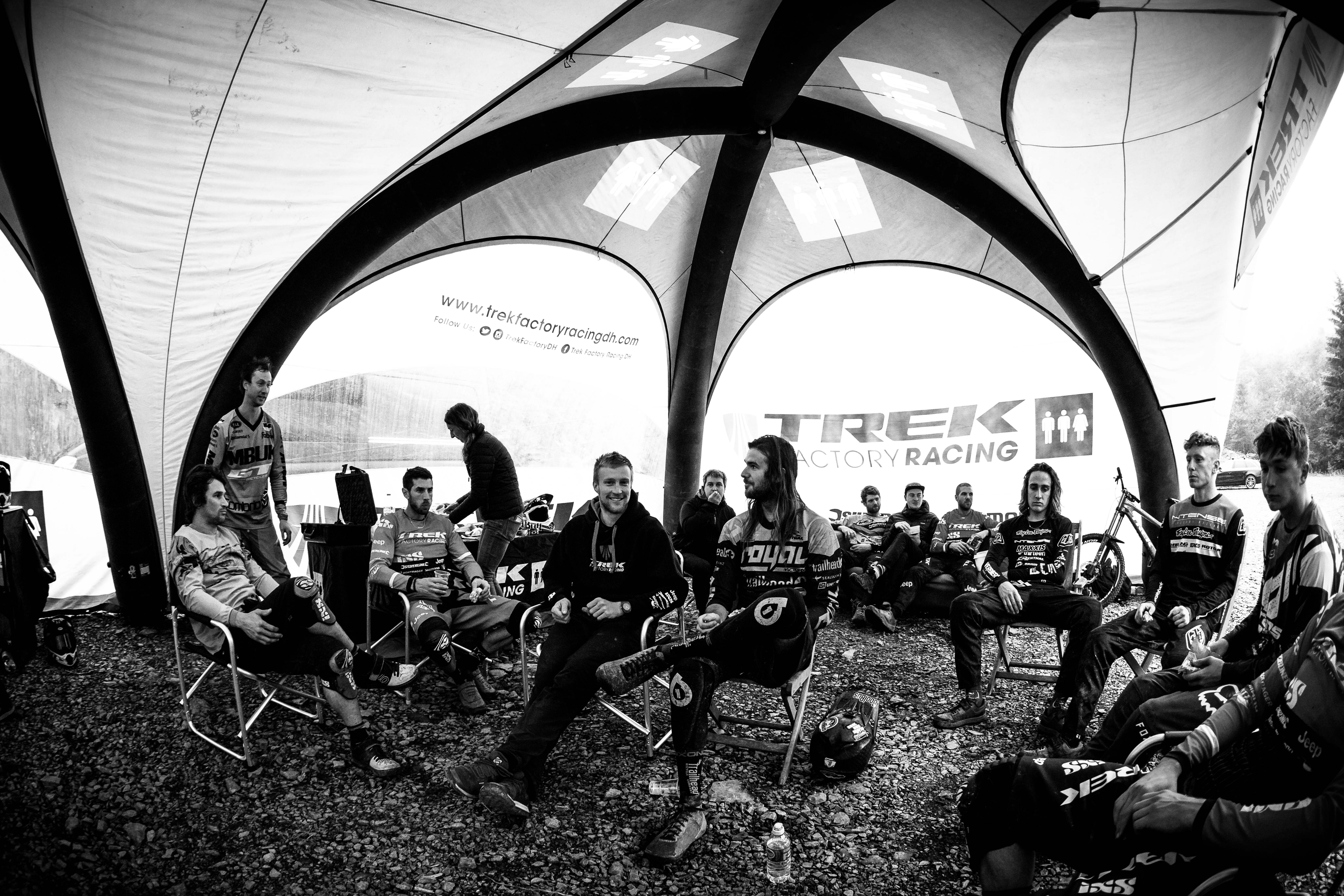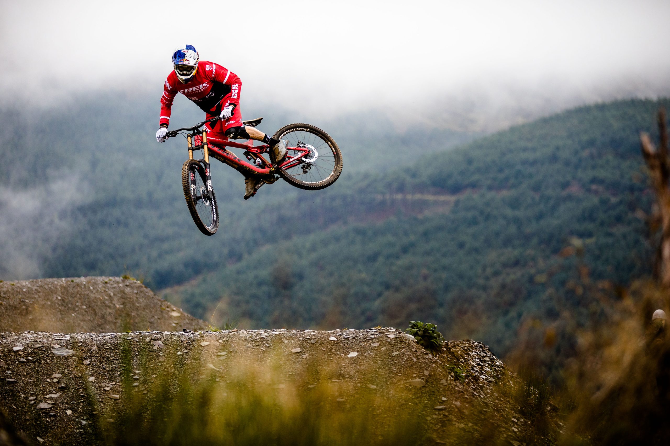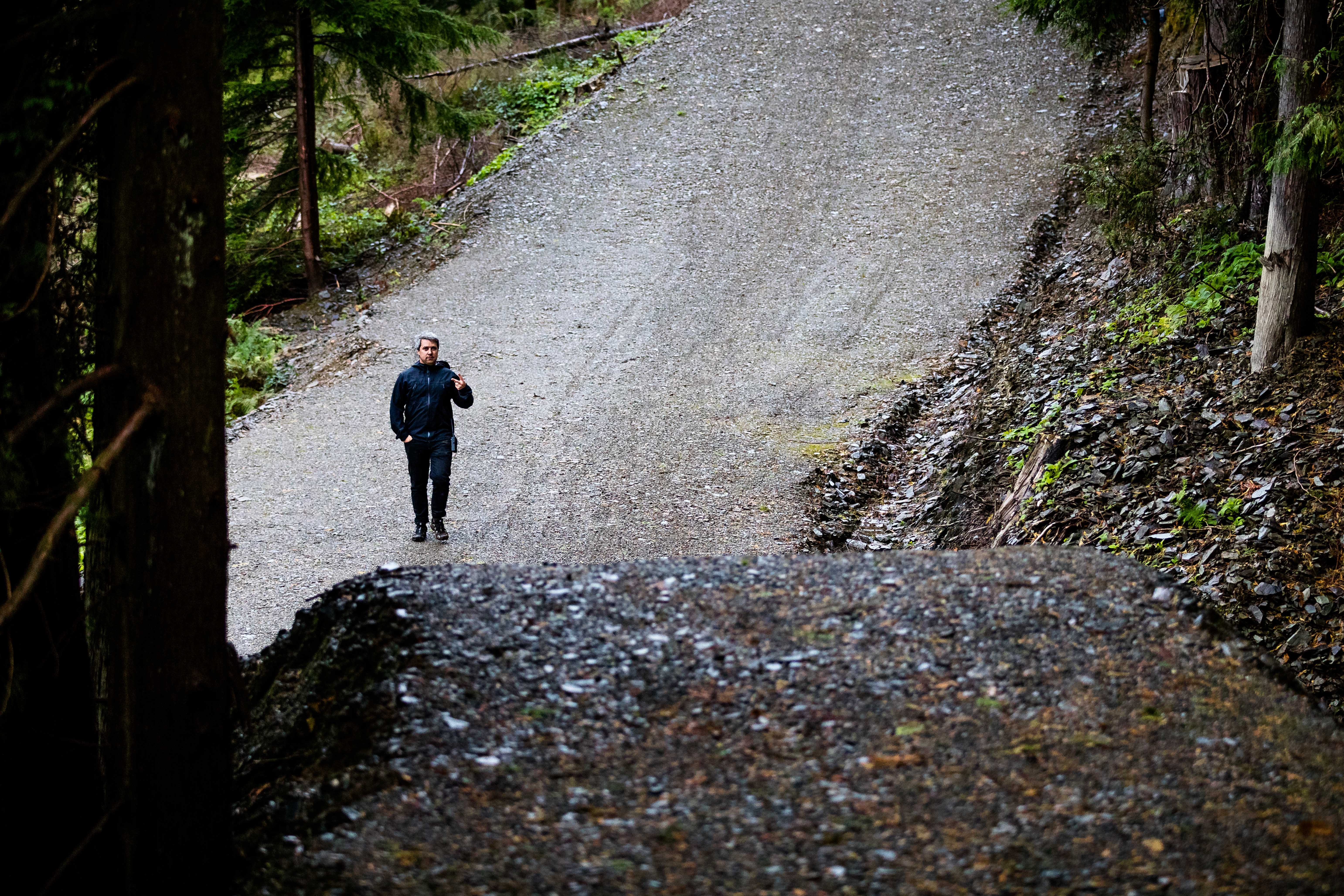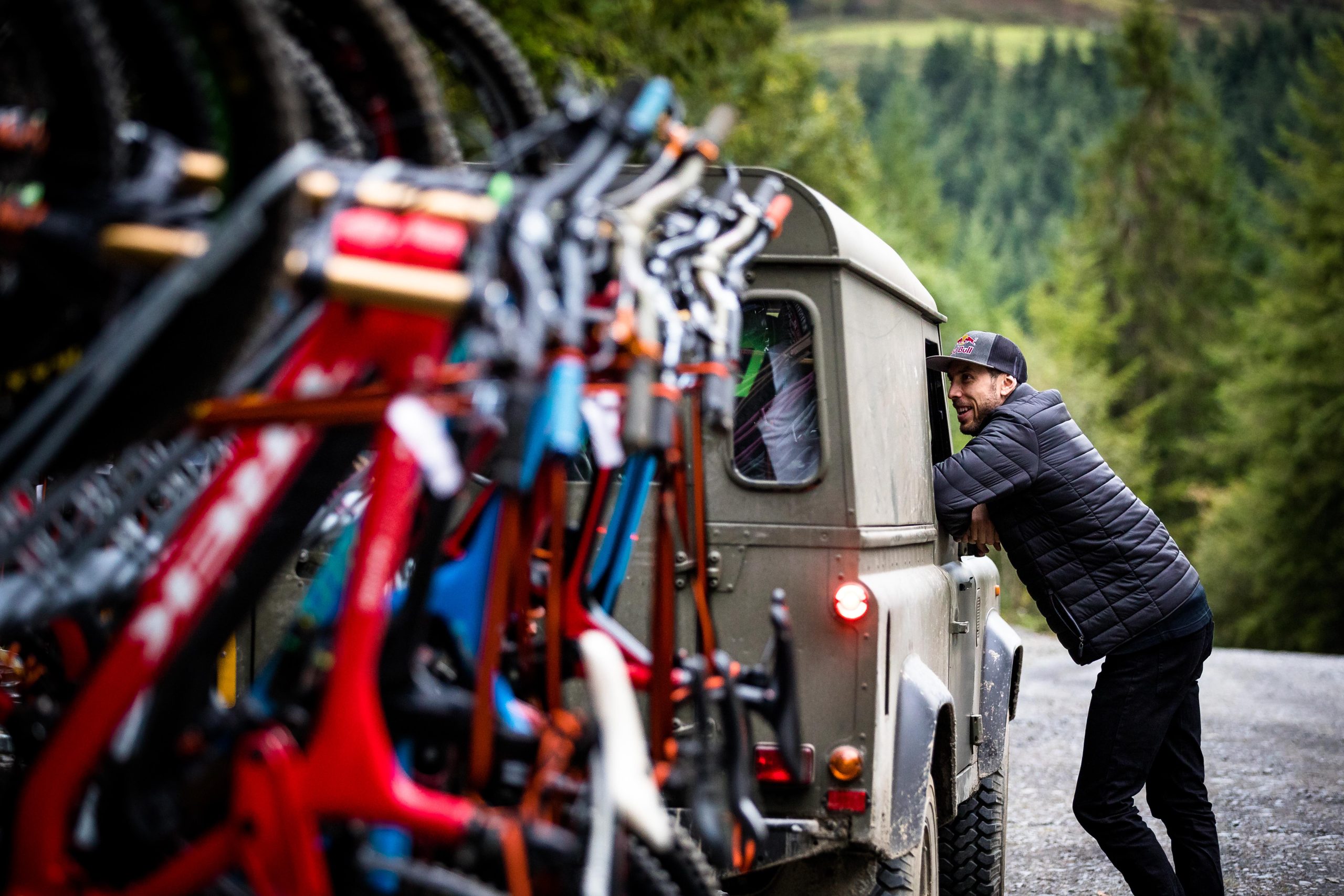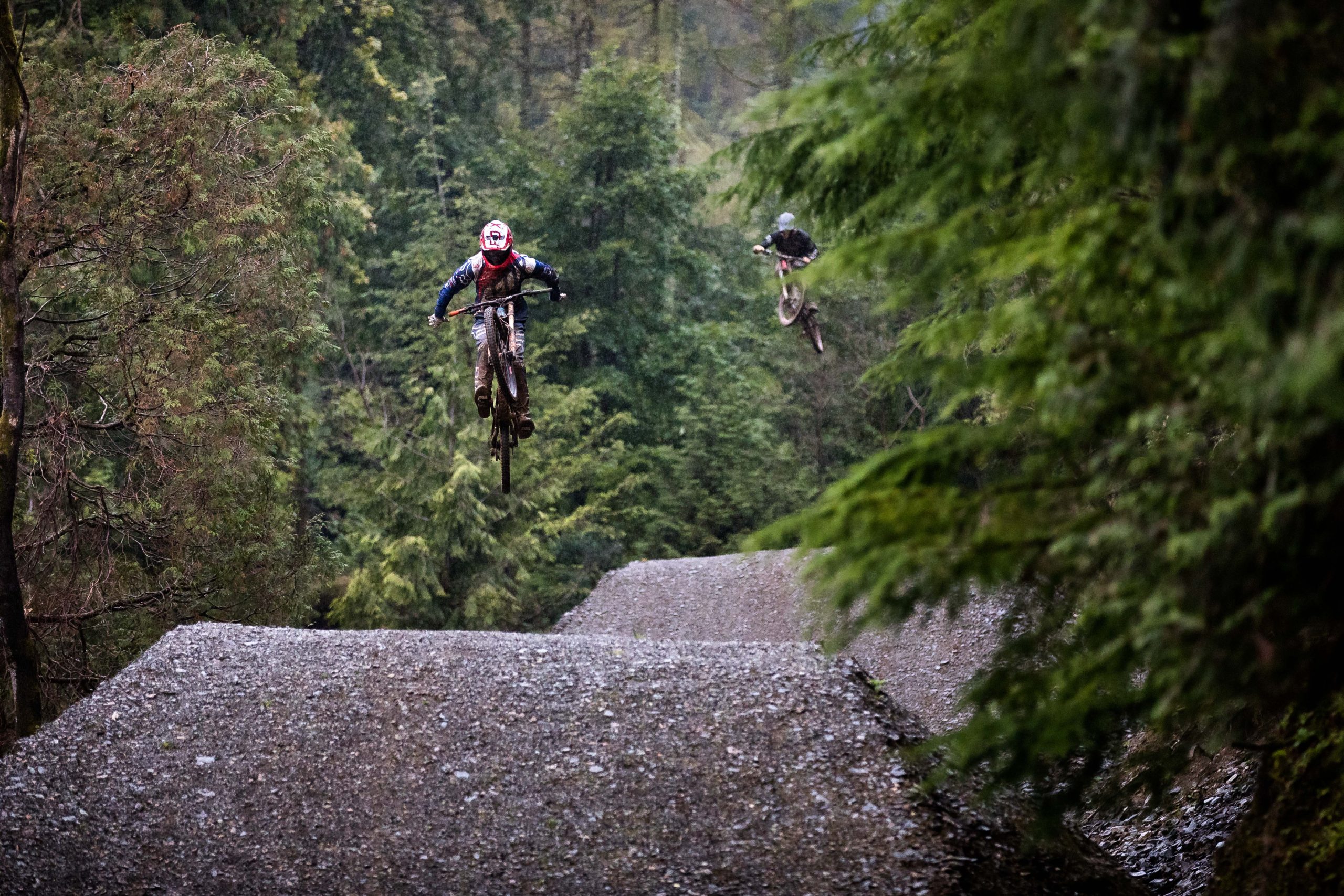 In North Wales, Dan Atherton has been tweaking his monster course to be ready for the first sends on Friday. As a warm up, he invited the racers to his other creation in the DyFi forest to get used to the wet, slatey conditions and the feeling of riding big jumps again.