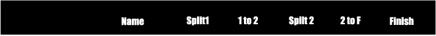 The table below shows the split 1 and 2 times plus the finish and also split 2- split 1 and the finish line time – split 2. Make sense?
