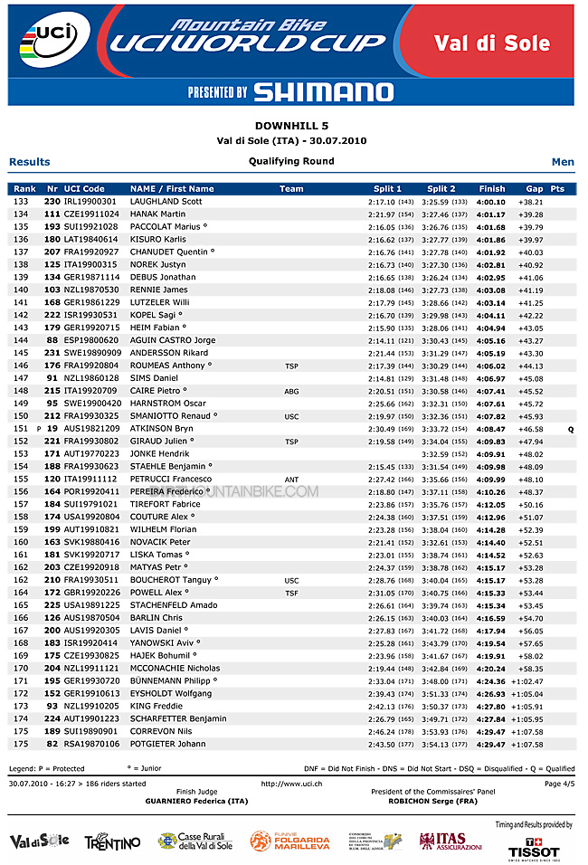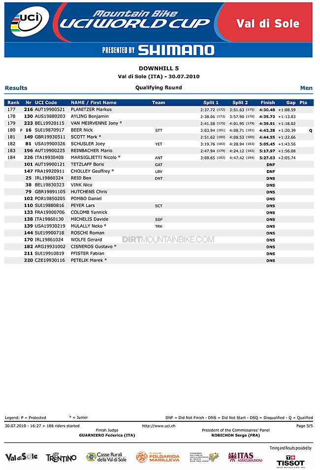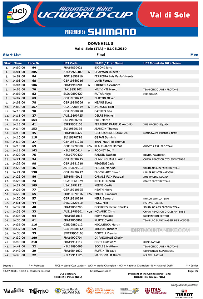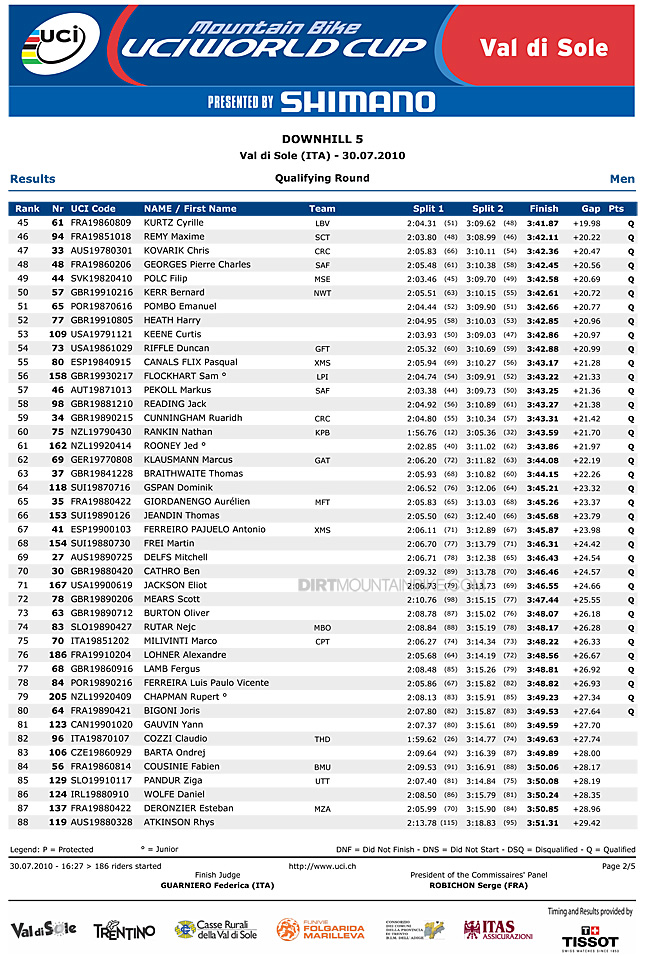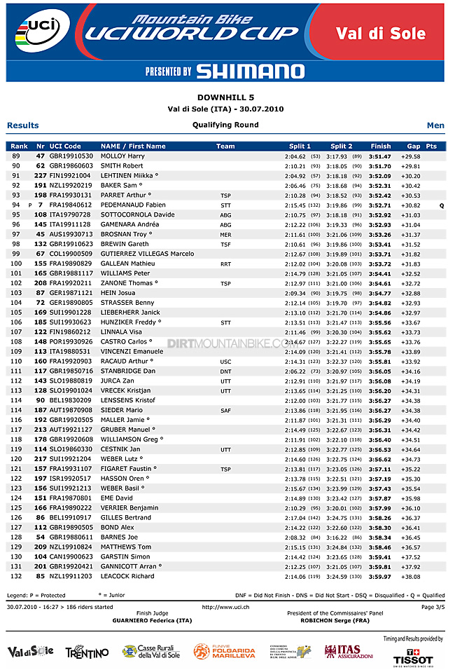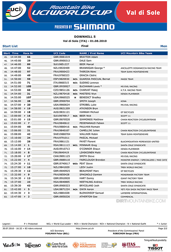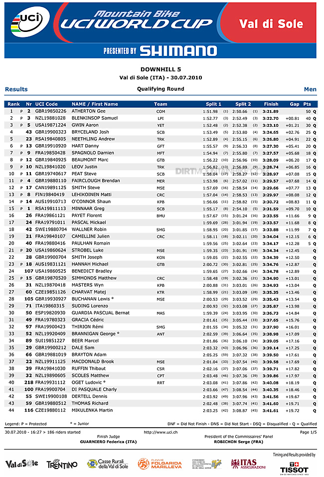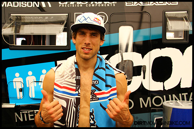 1st. Gee Atherton with a double thumbs up wins Val di Sole qualifying in a repeat of the 2008 Worlds. With Minnaar having an off, Gee takes the lead in the points gap