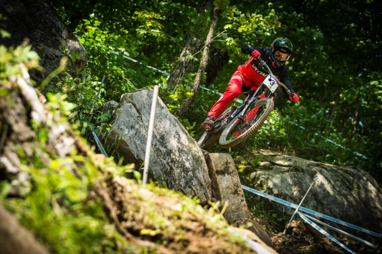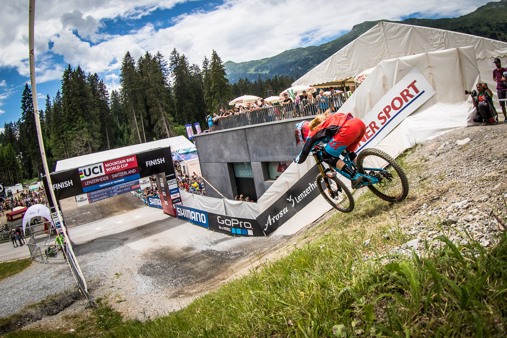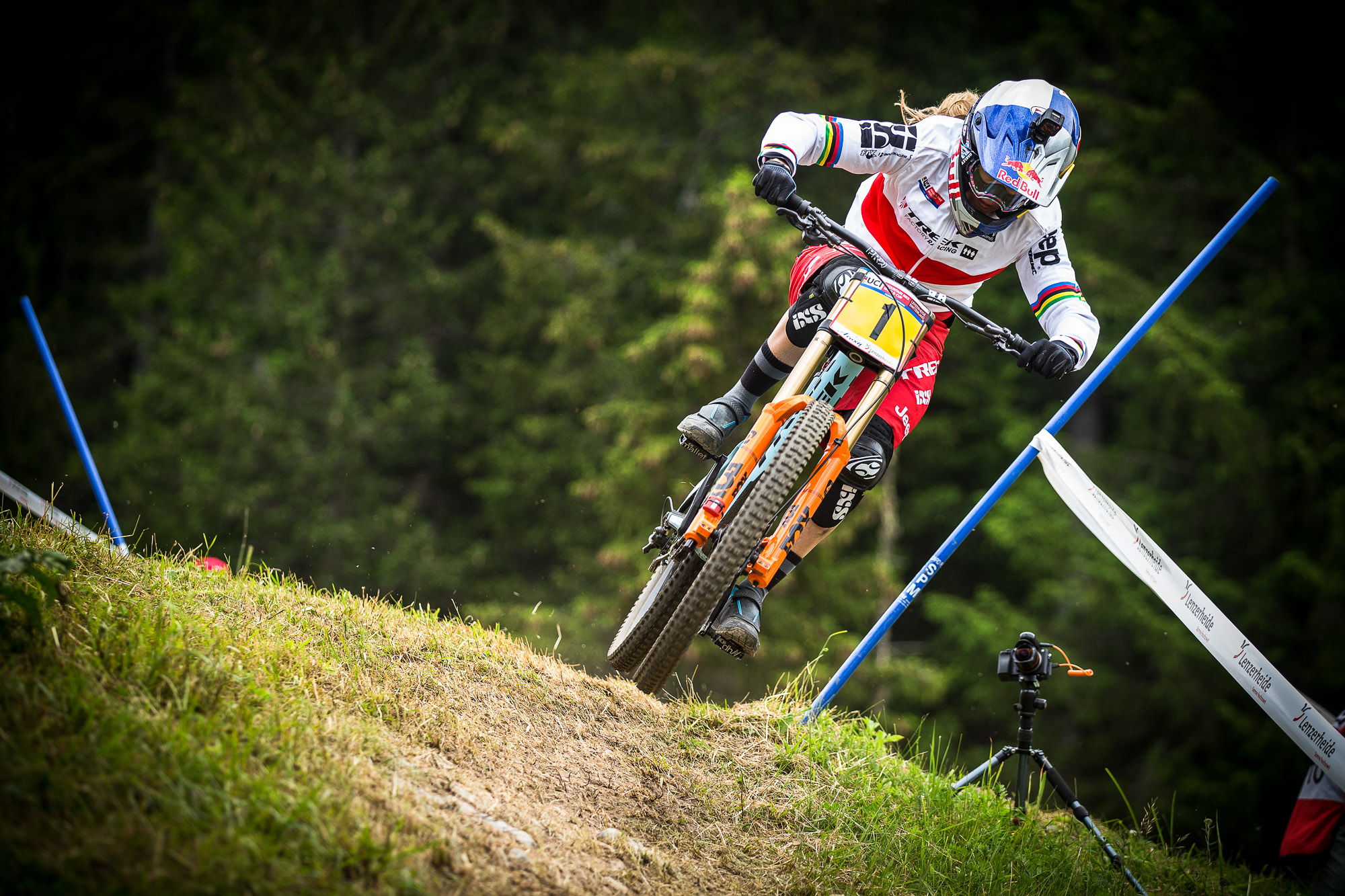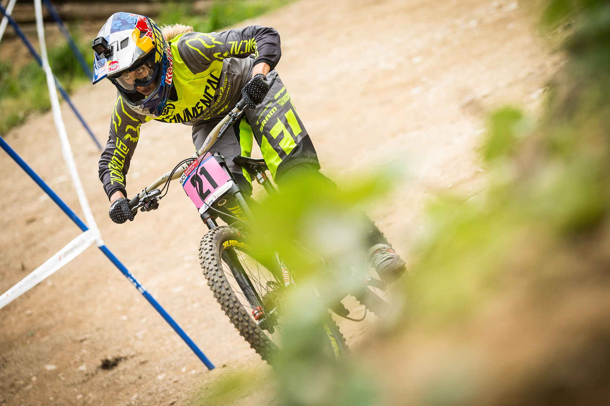Then Tahnee. She was so desperate for this win (her first at World Cup level), and she was right there. Down at split one by just a fraction, the same at split 2, but by the time split 3 came up she was almost two seconds back from Atherton’s time. It was a big ask. Split 4 and she was still almost two seconds back. It was weird because she looked to be hauling; neat and tidy but definitely not holding back. Crossing the line she was 0.7 sec back and in second place. Both she and Rachel had missed the higher line just after ‘The Plunge’, maybe that could have made the difference? We will never know.