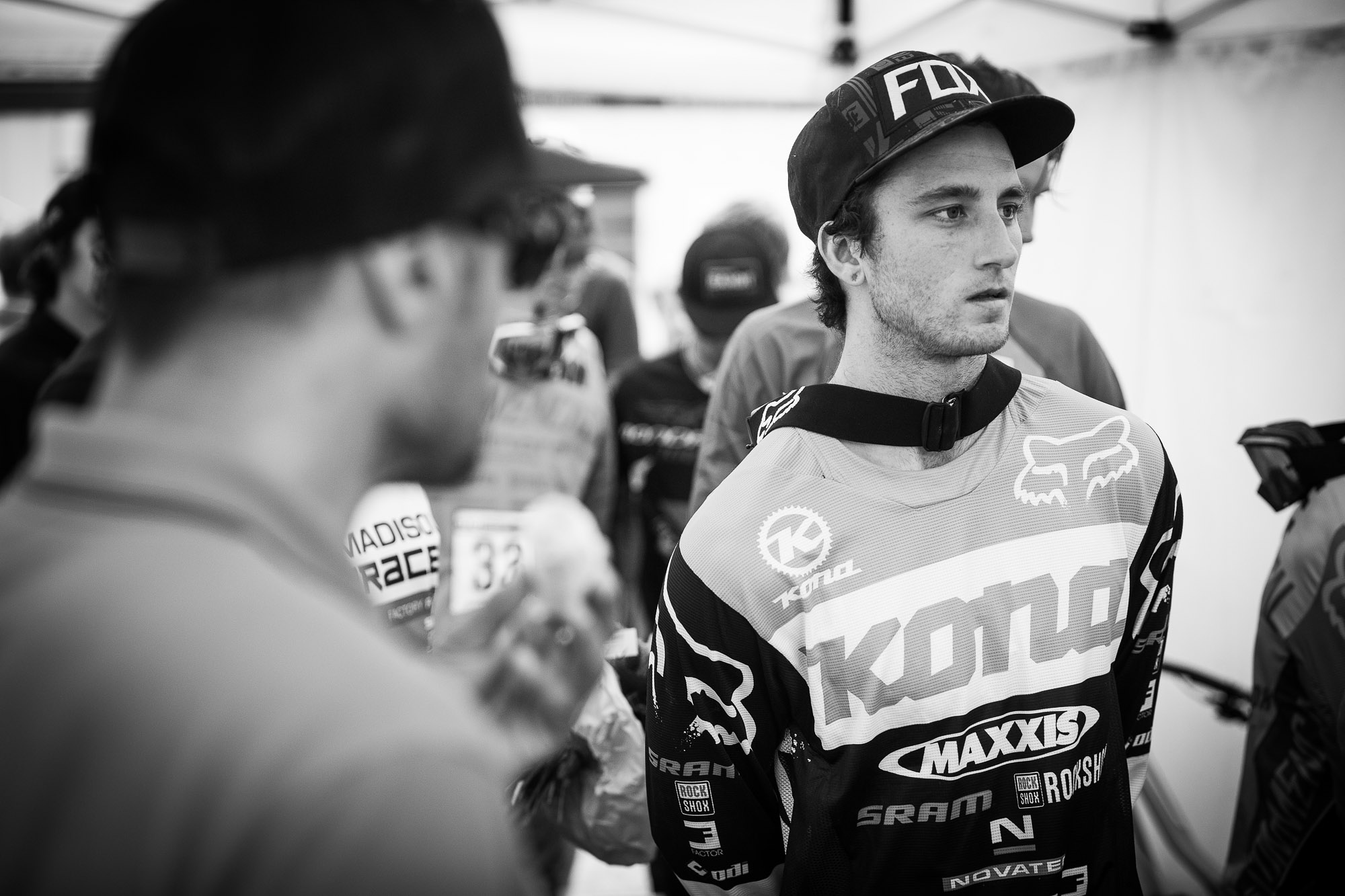 He wouldn’t stay there long as current series leader Aaron Gwin was next down. He put almost five seconds into Fairclough’s time with a 3.05. That was kind of expected, but it still came as a shock. Watching him as he raced down the course it was ‘seat of your pants’ stuff. He was so committed, seemingly taking his life in his hands on many occasions, risking it all in places! Gwin would stay there until the death.