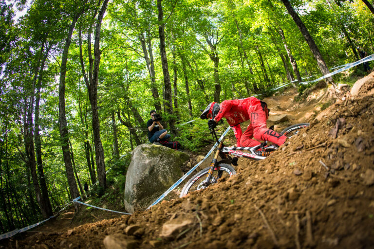 Rider after rider came down, but none of them were really getting close. Many of them were on great runs, but Gwin held firm. Luca Shaw dropped into second for a while, then (to a cacophony of noise) Remi Thirion took his spot (he would eventually ended up in fourth with Shaw in seventh). Connor Fearon was down at split 1, but clawed some time back, but he was still off Gwin’s time. A great result though for the Australian as he finished up on the podium in fifth. MacDonald (25th), Brayton (12th), Brosnan (6th), Greenland (13th) and Jones (29th, after a big crash a mashed ankle, and a mechanical in his run) couldn’t get near.