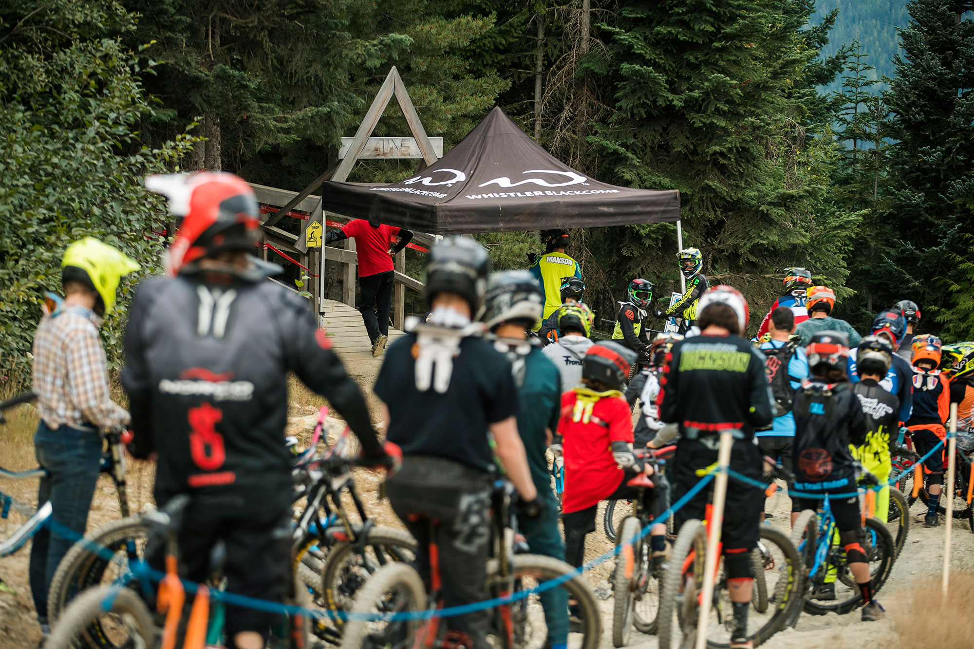 There was a funny atmosphere at the Air-DH in Whistler yesterday. A Line arose with more craters than a warzone on the moon while small crowds turned out to watch and party trains were kept to a minimum.