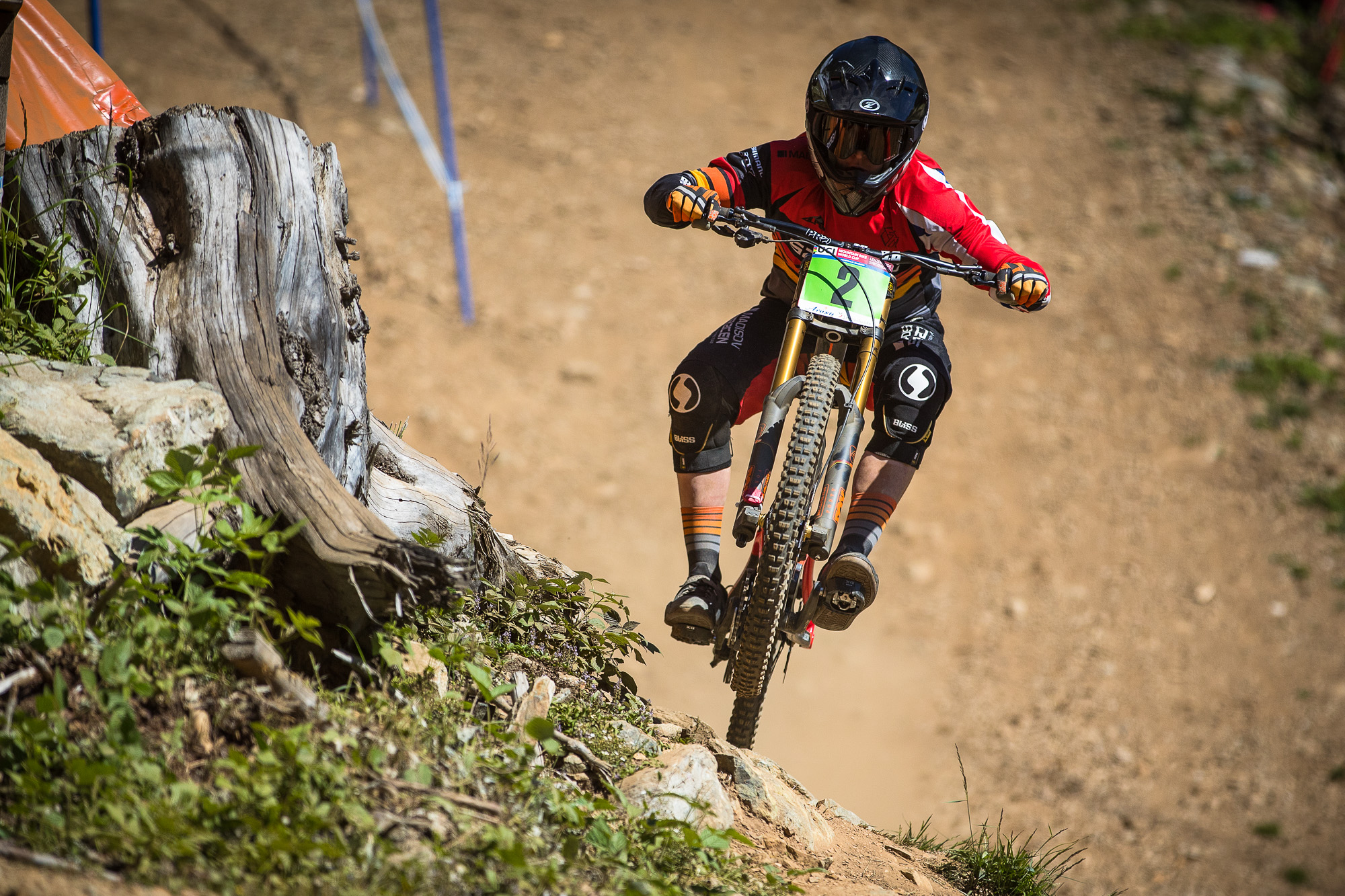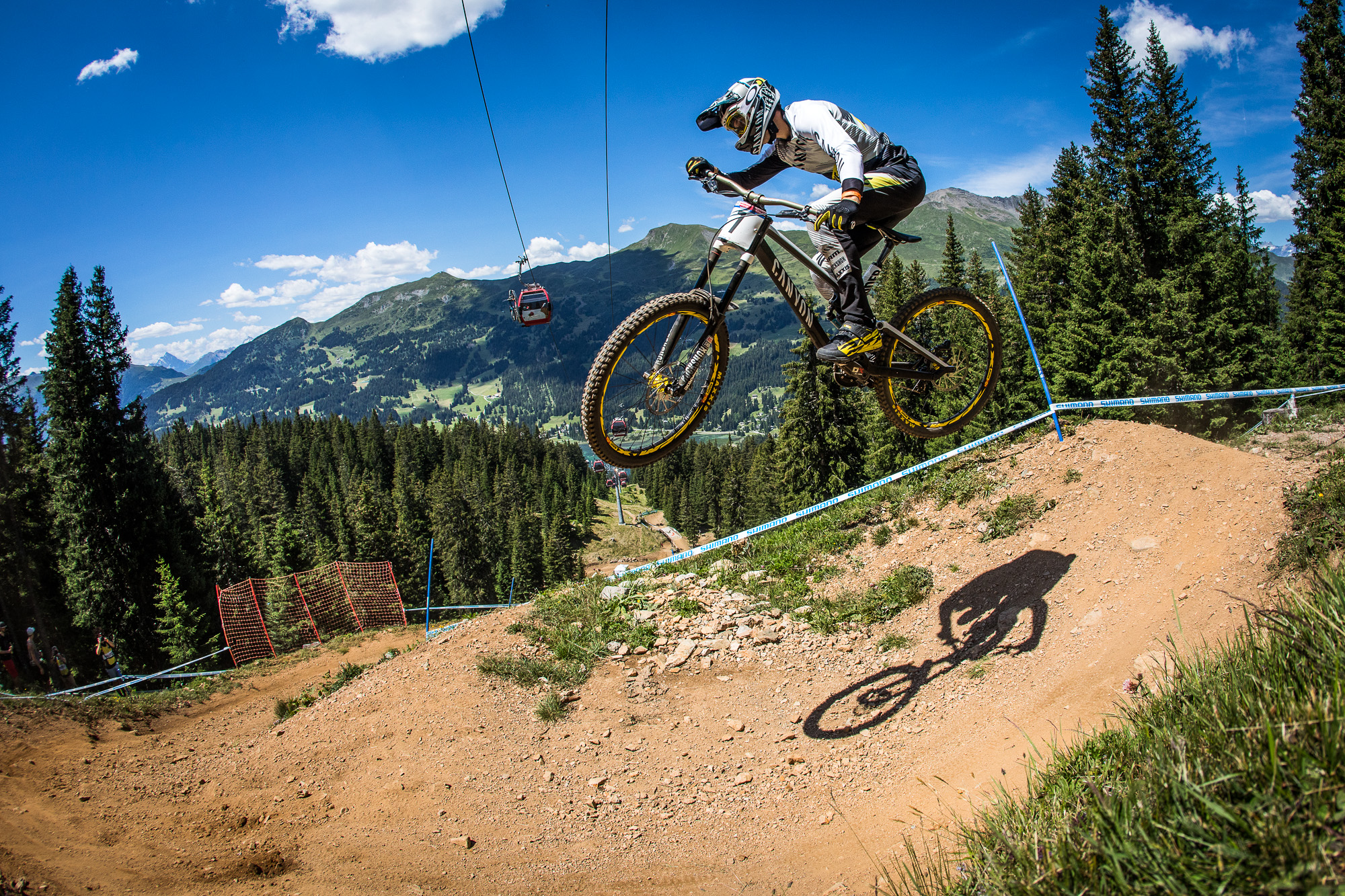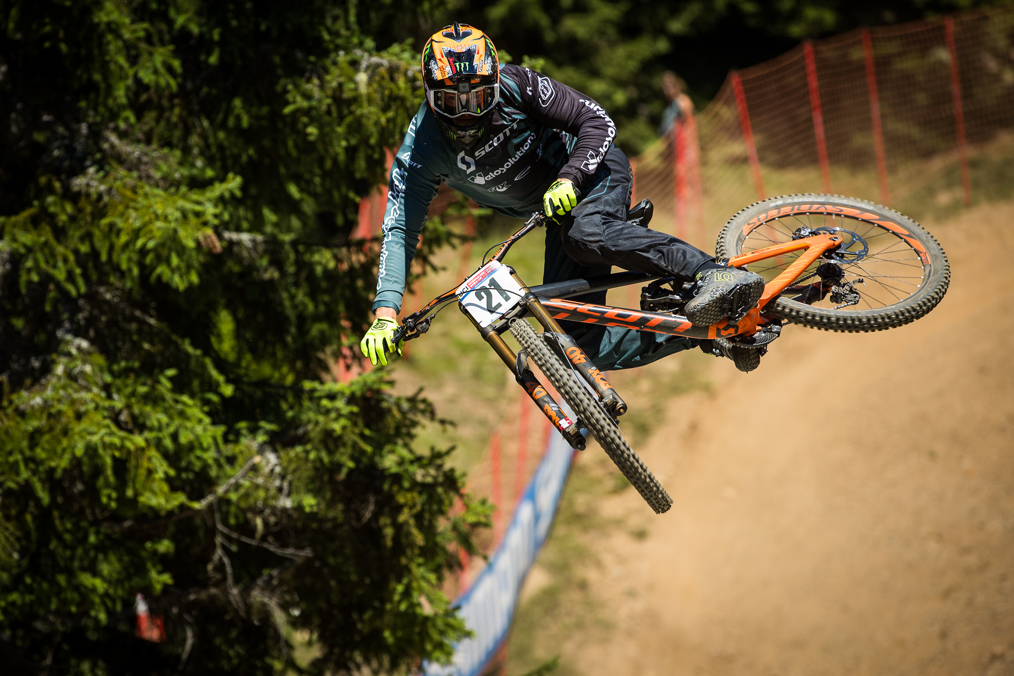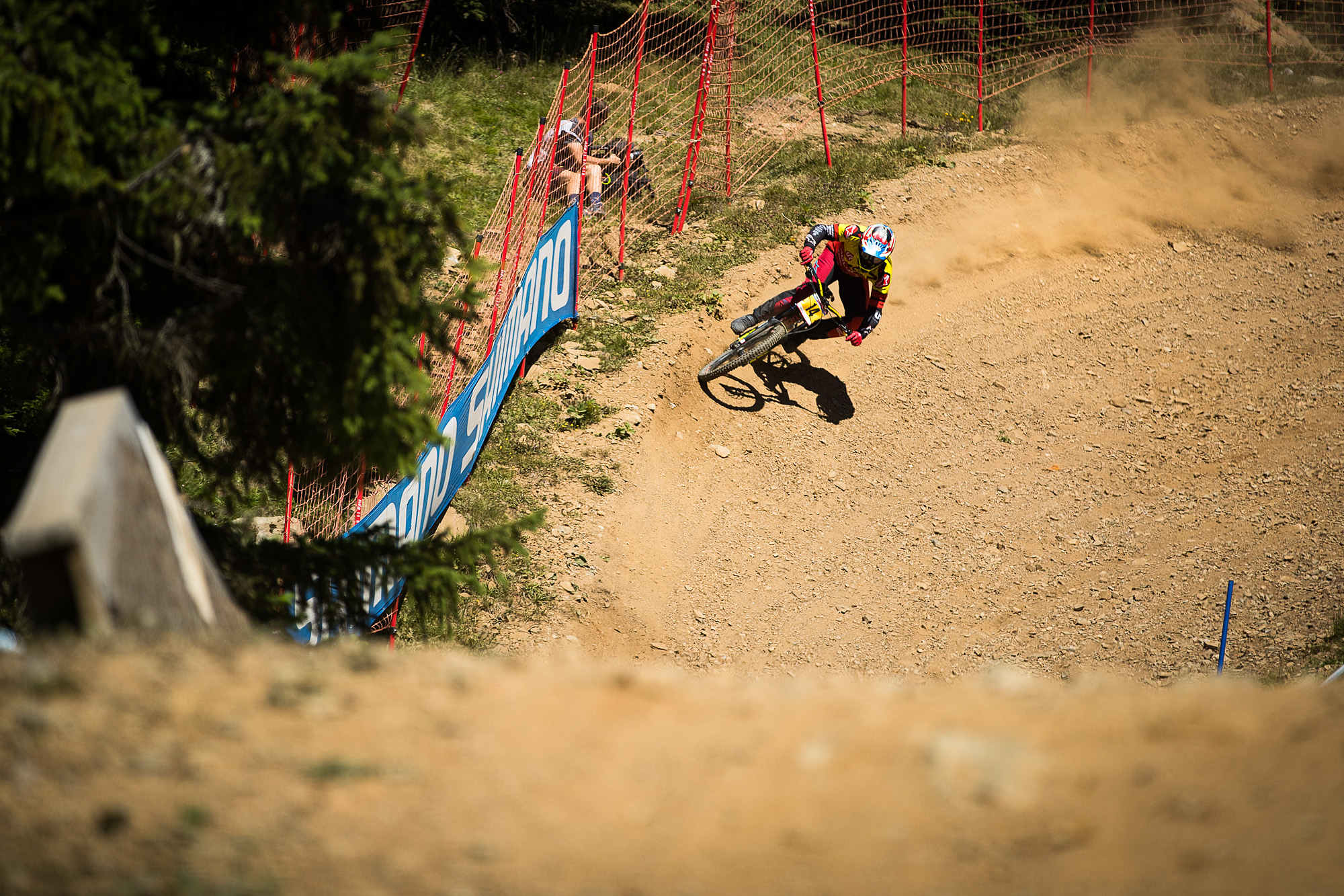 After that you’re into the usual Lenzerheide riddle, where’s the grip? With big holes contrasted with marbly dirt, both suspension set up and tyre choice are a bit of an enigma at the moment. Troy Brosnan and Tracey Hannah made the most of it yesterday but today will provide the real test of who has conquered this tricksy track.