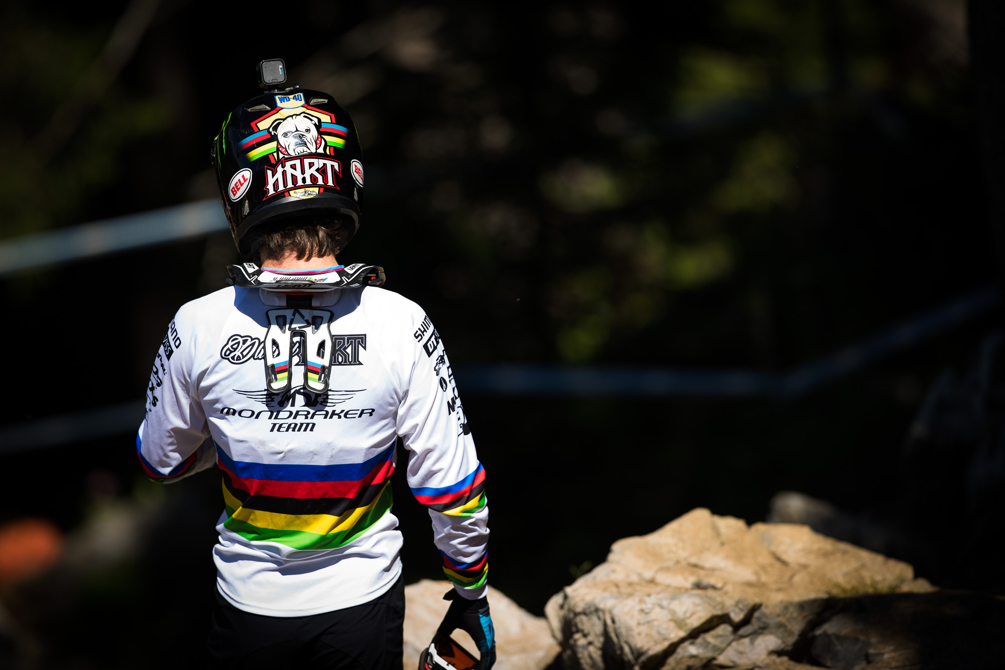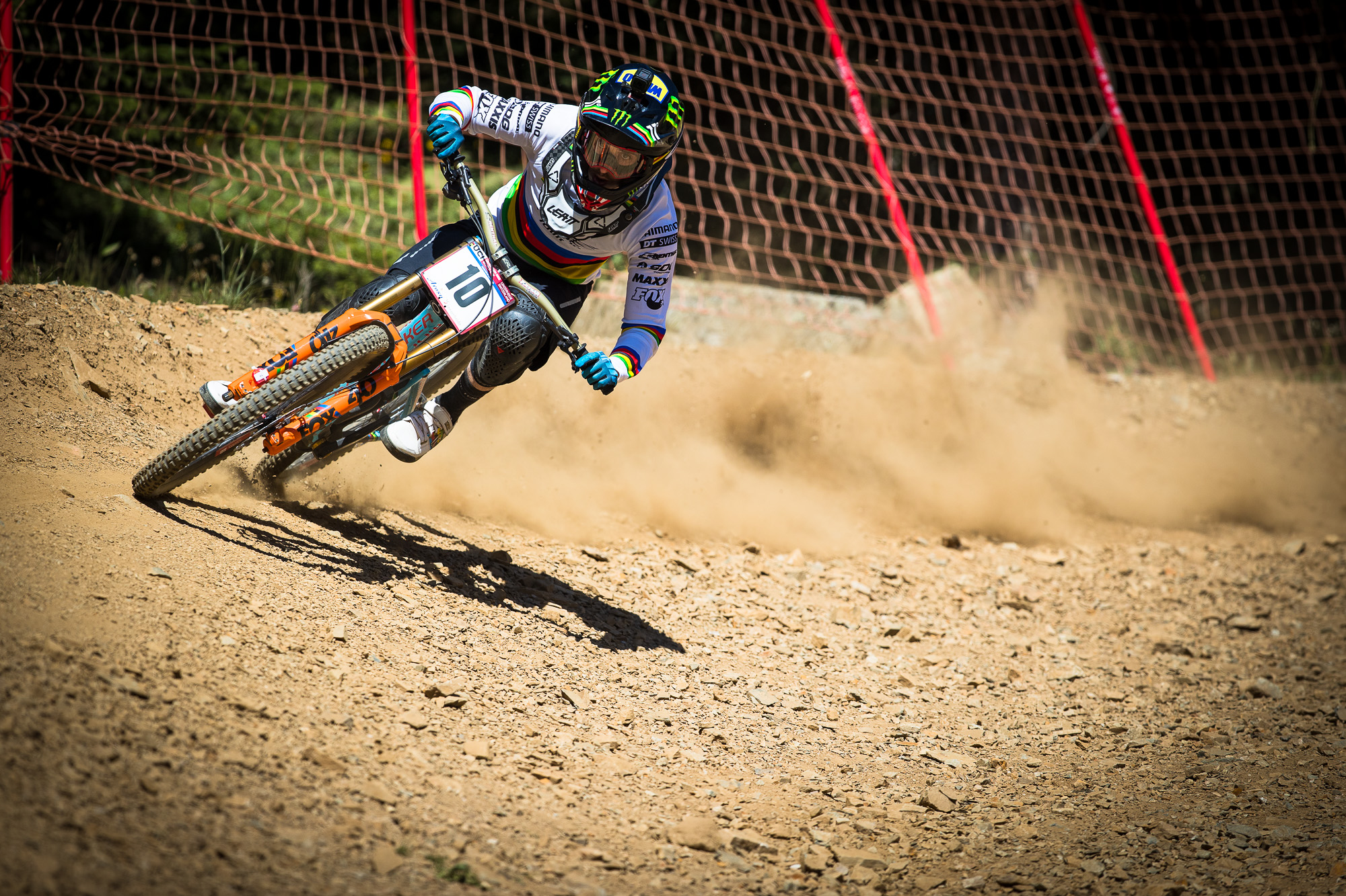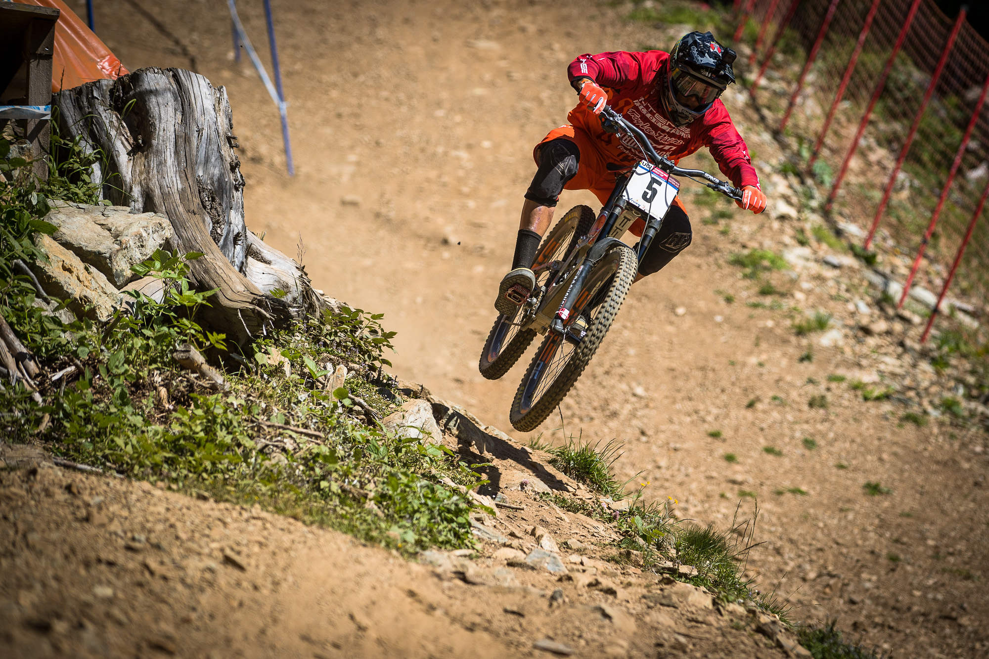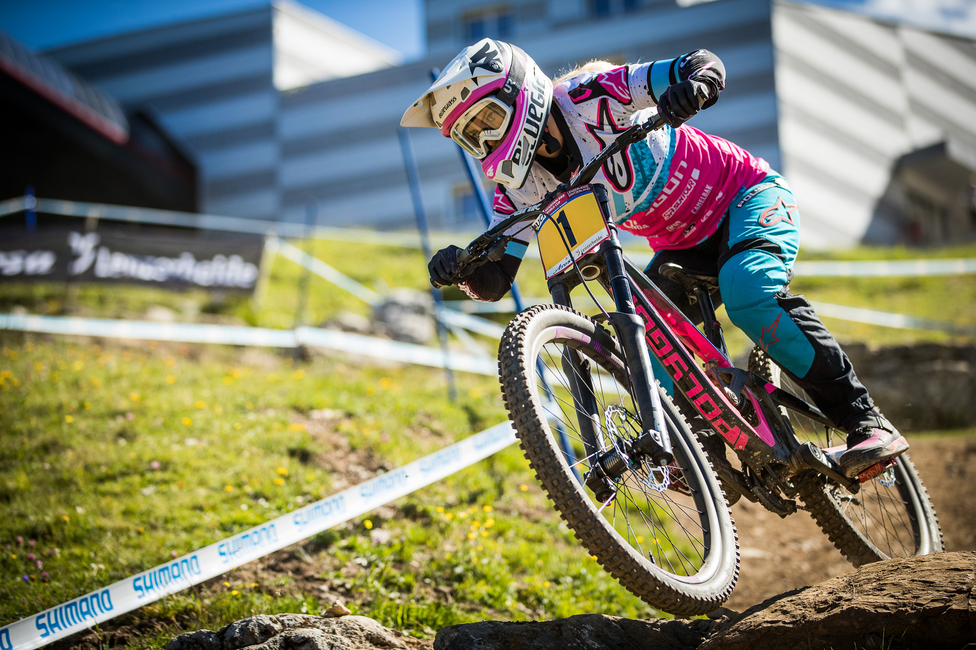 After that you’re into the usual Lenzerheide riddle, where’s the grip? With big holes contrasted with marbly dirt, both suspension set up and tyre choice are a bit of an enigma at the moment. Troy Brosnan and Tracey Hannah made the most of it yesterday but today will provide the real test of who has conquered this tricksy track.