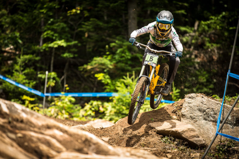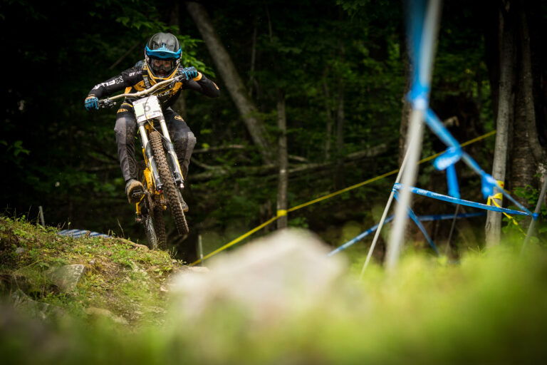 “Practice was going real good – I picked out a few new lines before race day, ones I thought would be fresh as the rest of the lines weren’t there anymore – so blown out. In my race run, I came into the first rock garden and sliced my tyre, burped some air, and didn’t have a complete flat so I kept on going, I was saved quite a lot by the Schwalbe ProCore however, as that survived and enabled me to hold speed on basically a flat tyre and cross the first split in 2nd place, only 2 seconds back. I went into the technical section in the second woods, where the Plunge drop is, went off it and my back end slid out, overtook my front and threw me and my ribs straight onto a stump. Bent my brake lever, dust in my goggles, I was riding down basically dribbling muck out of my mouth trying to wipe it away. I could barely see with one eye closed and full of dirt. I’m not sure where I ended up – not sure if I want to know but onwards to MSA and Windham.. hopefully get a win over there.”