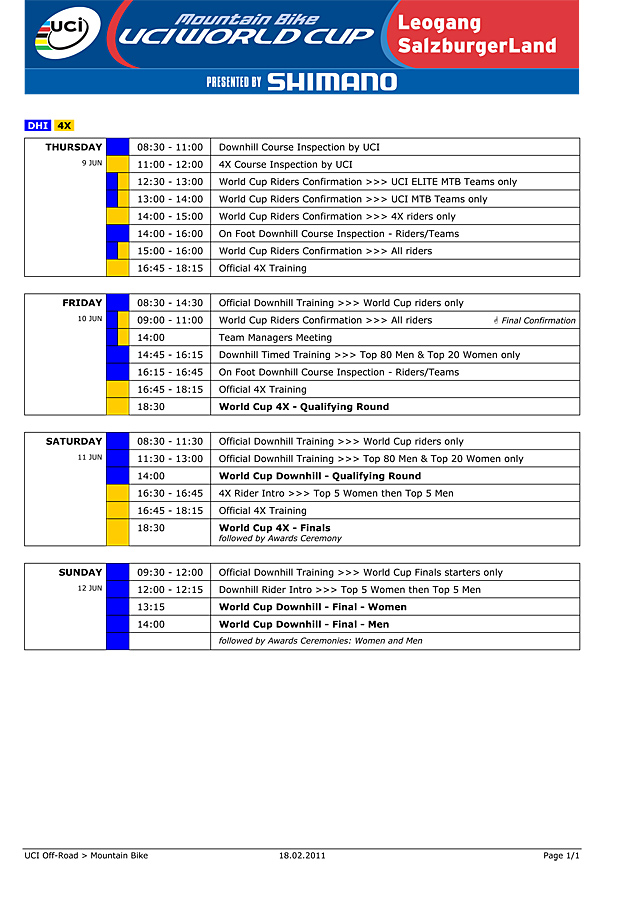 Leogang 2011 World Cup schedule