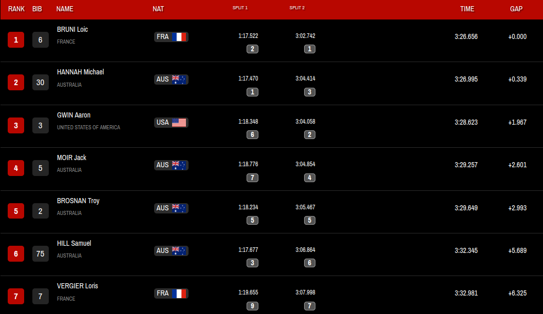 With the weight of a nation on his shoulders, Brosnan put in a gutsy run and was in touch the whole way down but in the end had to settle for fifth leaing gold for France and SuperBruni.