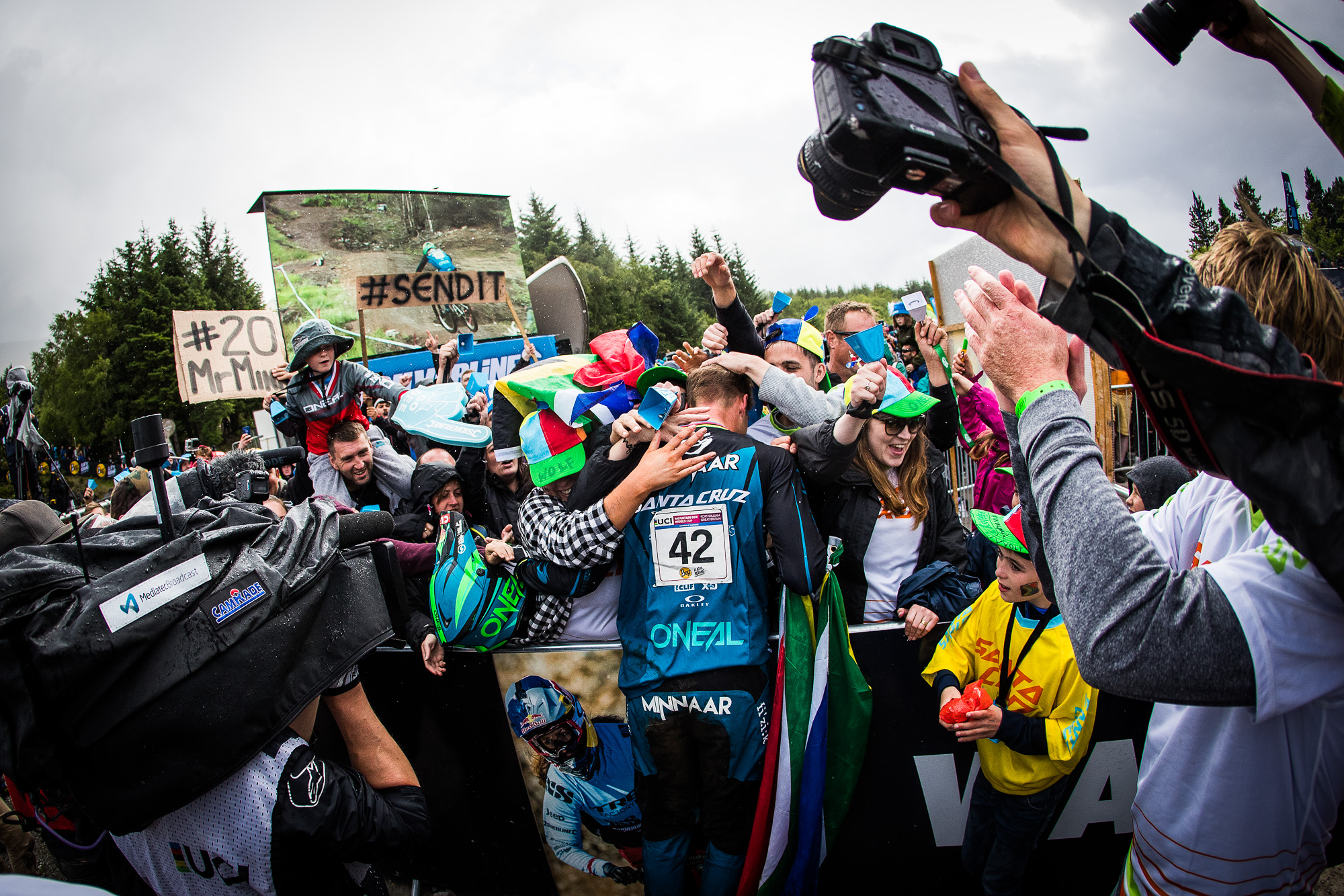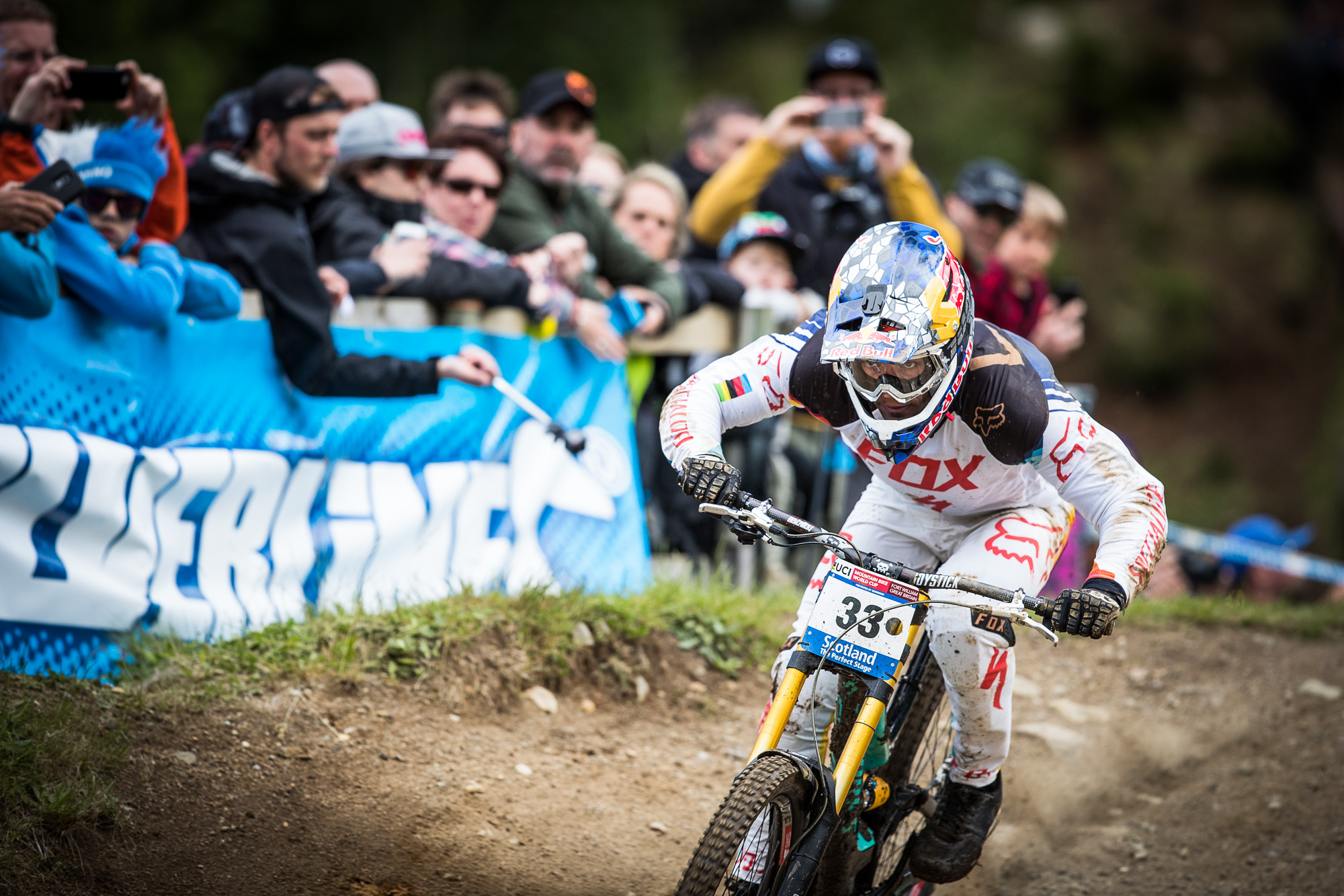 Fort William was a Tour de Force from the most successful male downhill rider of all time. In qualifying he put three seconds into the field, in race runs he had the wettest track to ride on and the most chewed up woods to plough through but he still managed to pull two seconds on the rest of the field. Whatever the secret formula here is he’s keeping tight lipped about it, and who can blame him when he’s turned Fort William into Fort Minnaar.