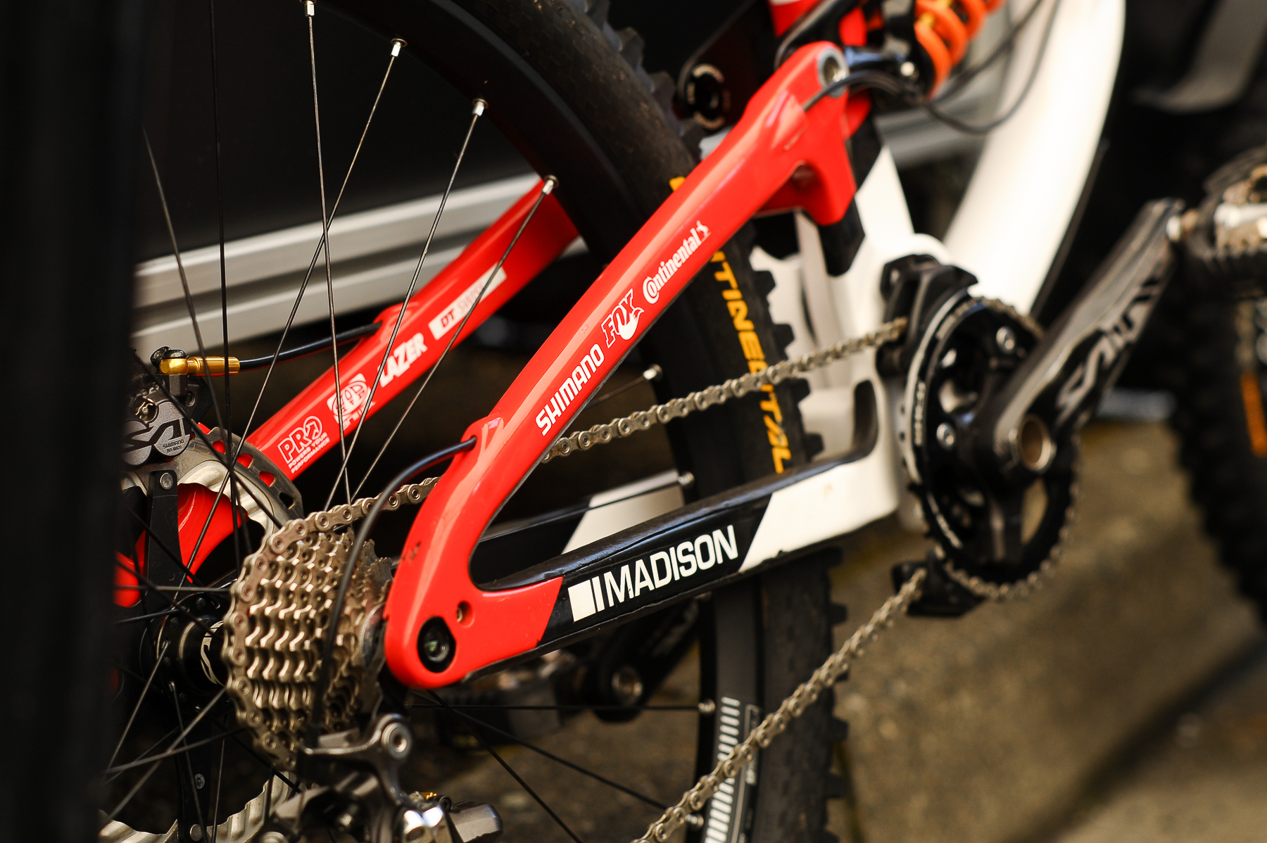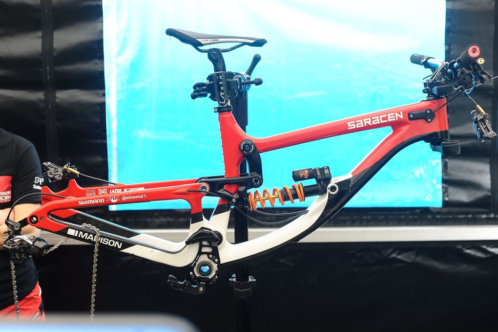 … she’s been on the Madison Saracen team for quite some time now and has had some input into the frame design over the years. We stopped by the Saracen pits to take a little look around her bike.