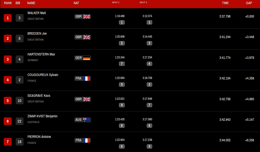Walker was the only man to beat Finn Iles all year in the World Cup series bu injuries meant he couldn’t really mount a challenge throughout the year. Walker bested the young Canadian once again in Cairns as he took advantage of a struggling Iles. Second place also went to a Brit rider as Joe Breeden followed his compatriot home 3.5 seconds in arrears.
