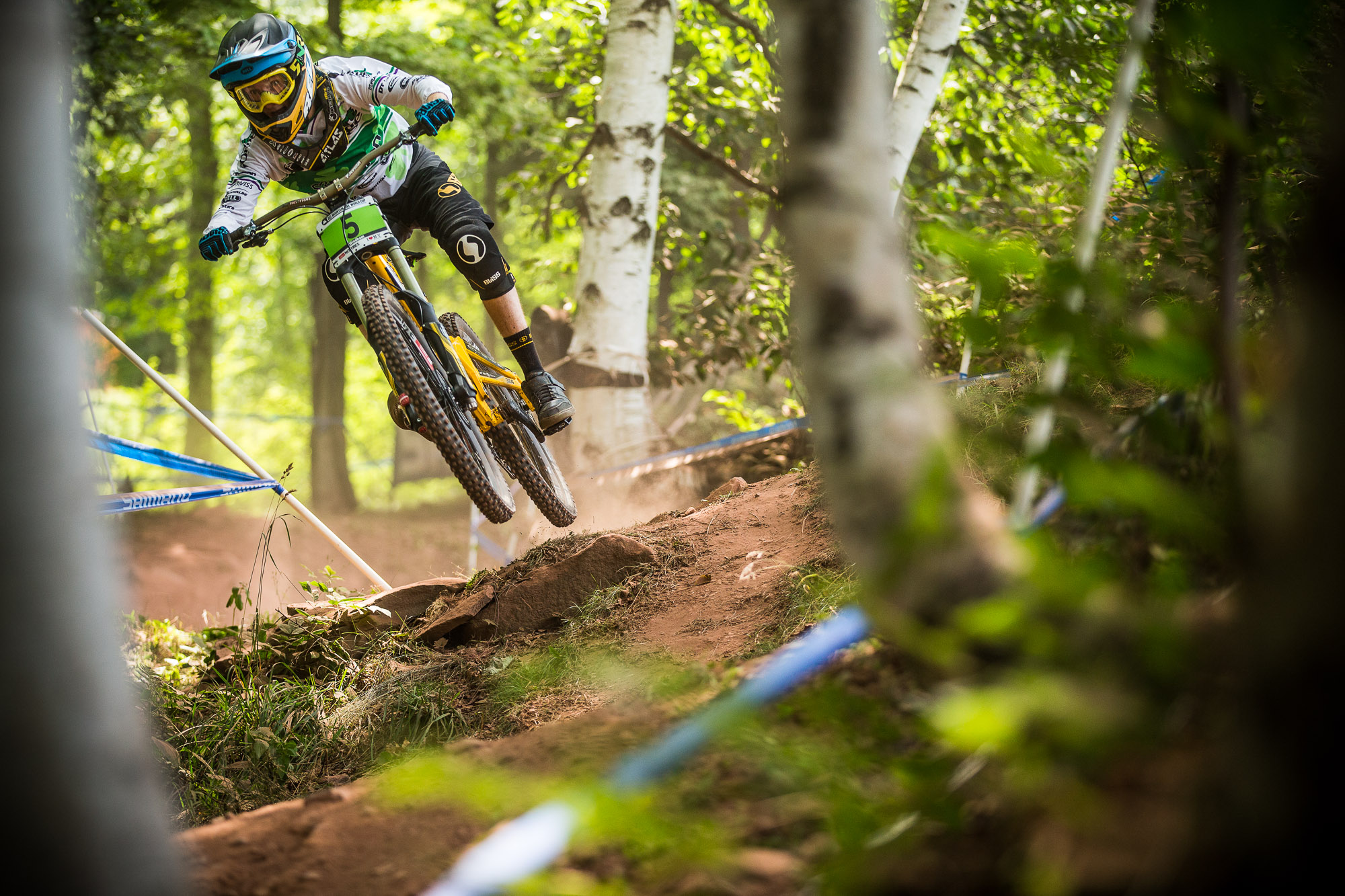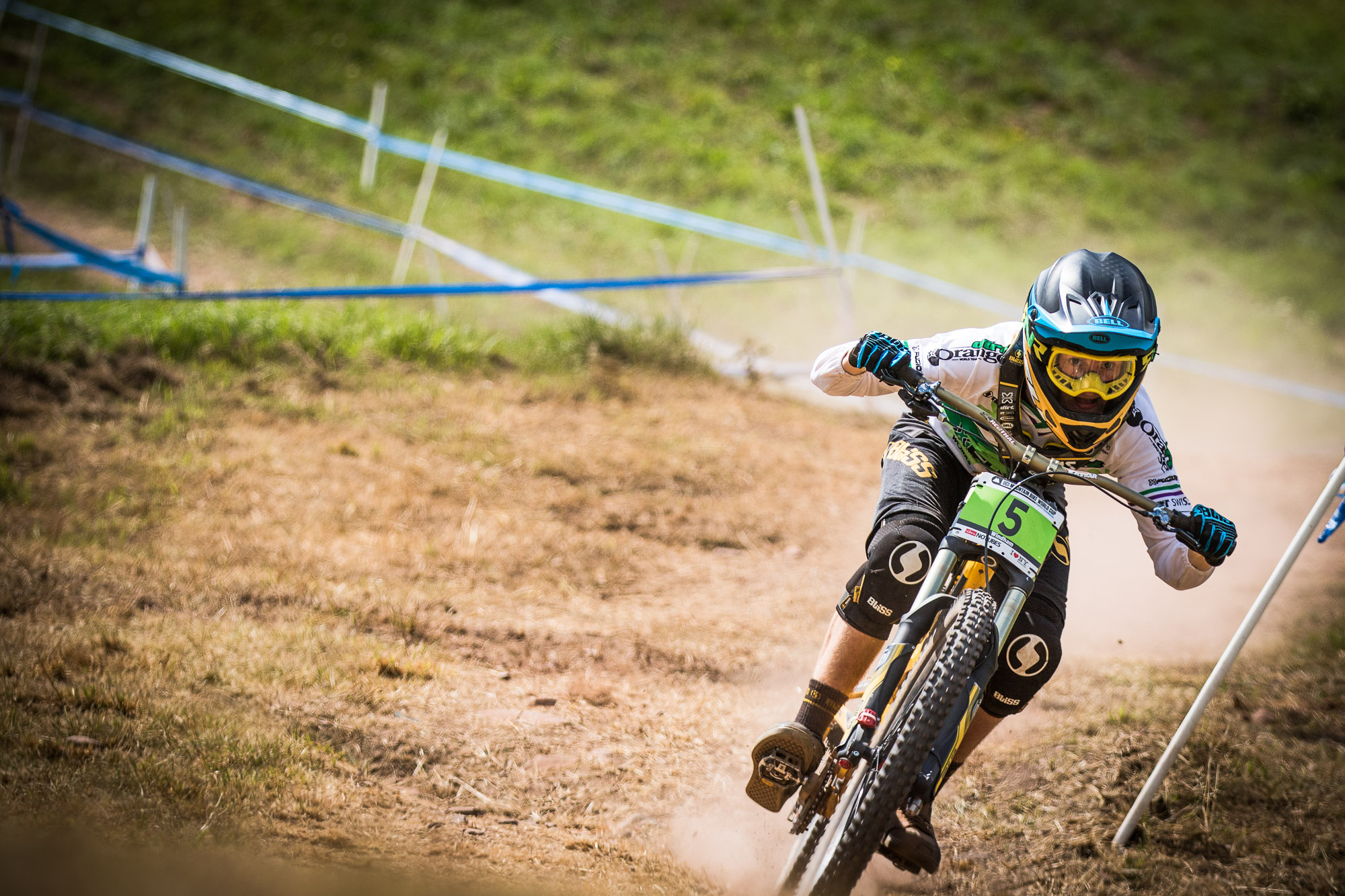 “My run went really good – I got 2nd, 0.7 off the win, which I’m happy about but I’m also a bit annoyed about. I was supposedly up at the first split, but I lost time in the middle. I know where I lost time though, which is a bonus. I think I now know what I have to do for Val Di Sol and Worlds now, hopefully getting the win soon! The problem with my run is that there was a section before the rock garden where I was hopping a stump, I went to hop it and my front wheel slid out, insided the next corner and had to pedal to get into the rock garden, probably lost half a second or so there.”