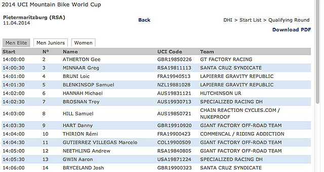 Gwin goes fastest in PMB qualifying! Bryceland 2nd and Minnaar 3rd
