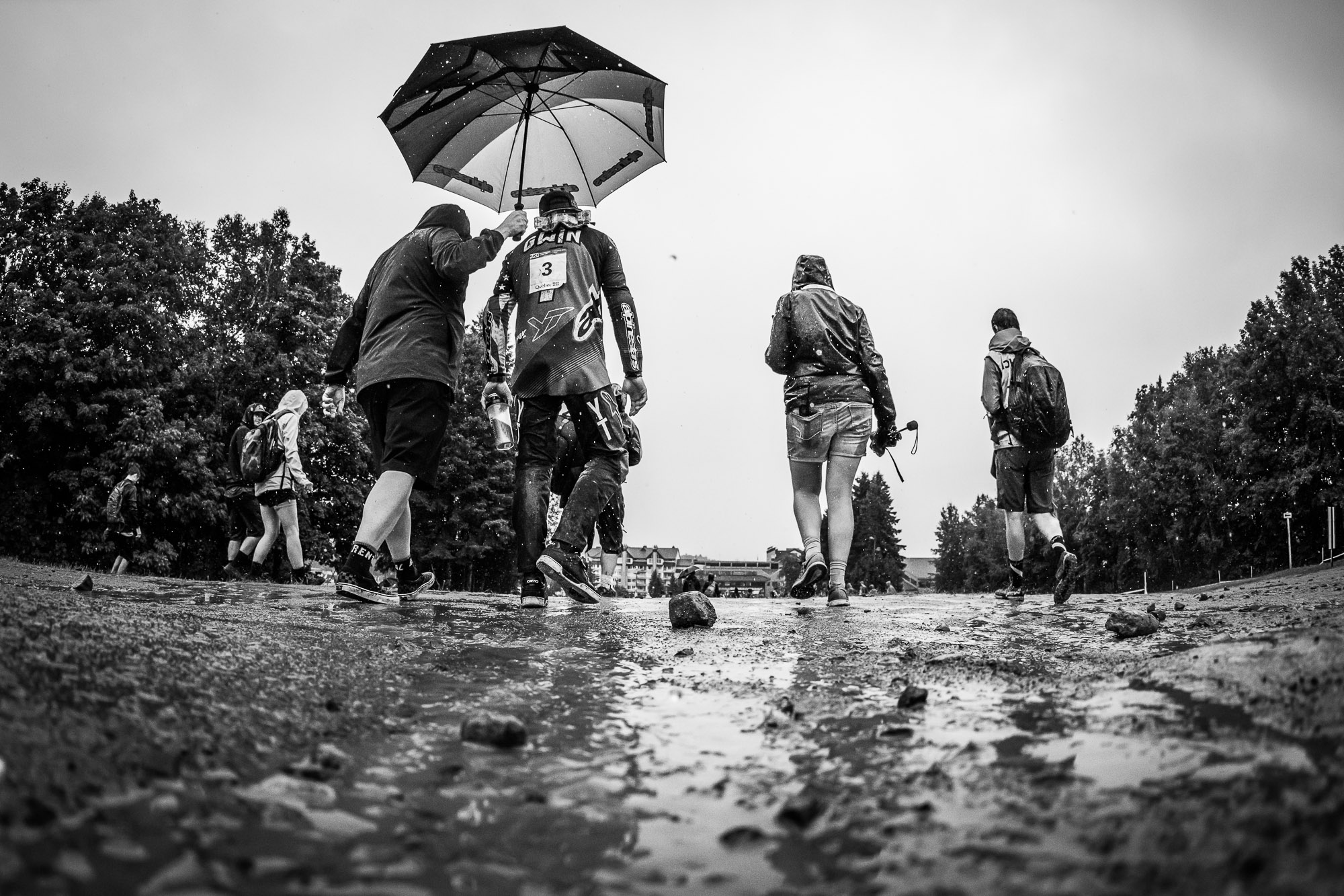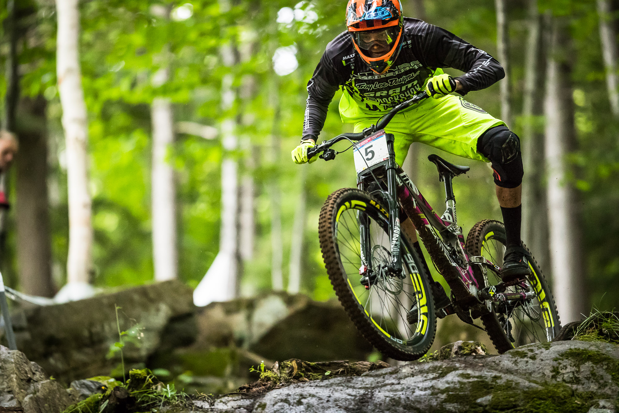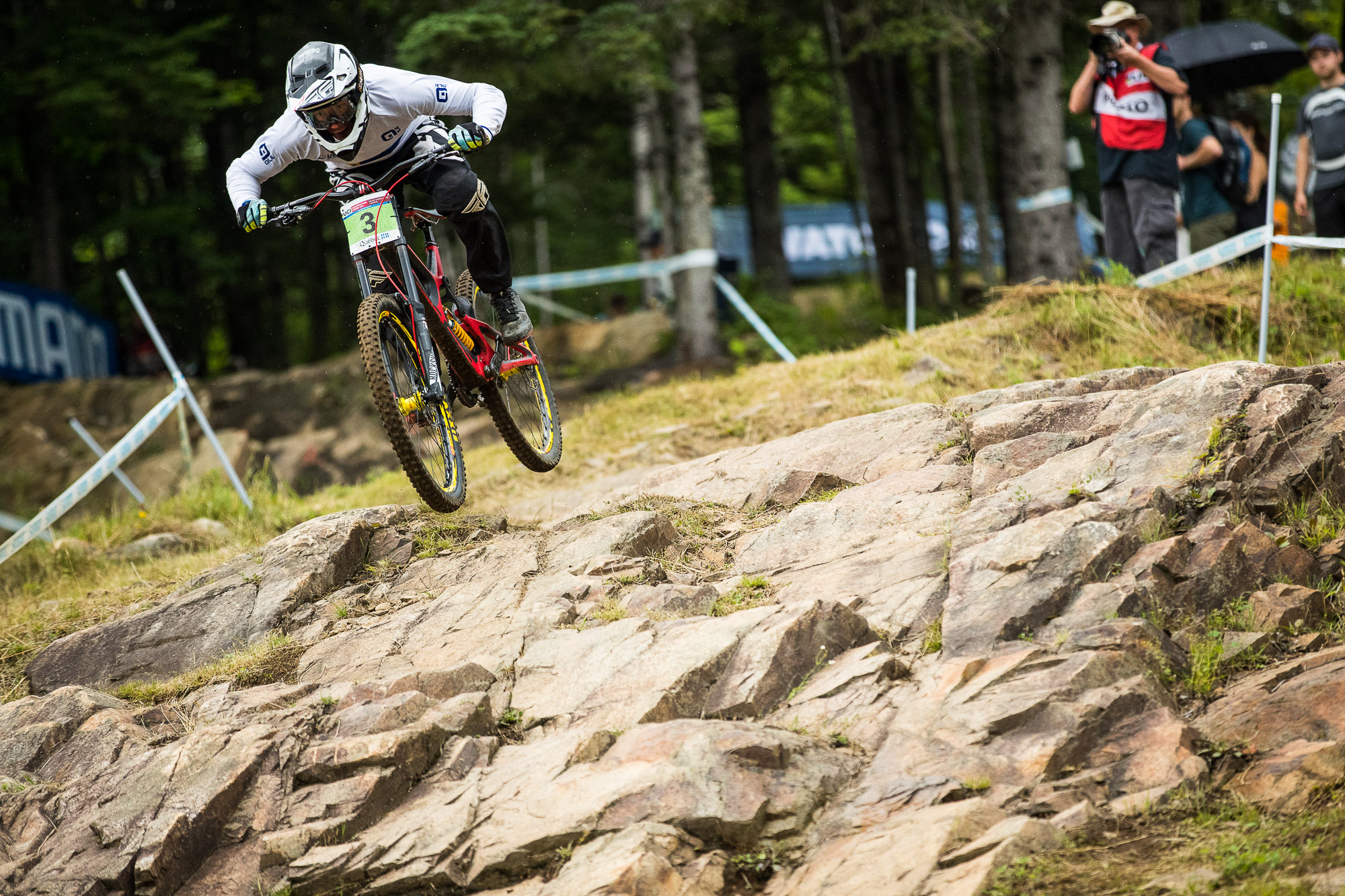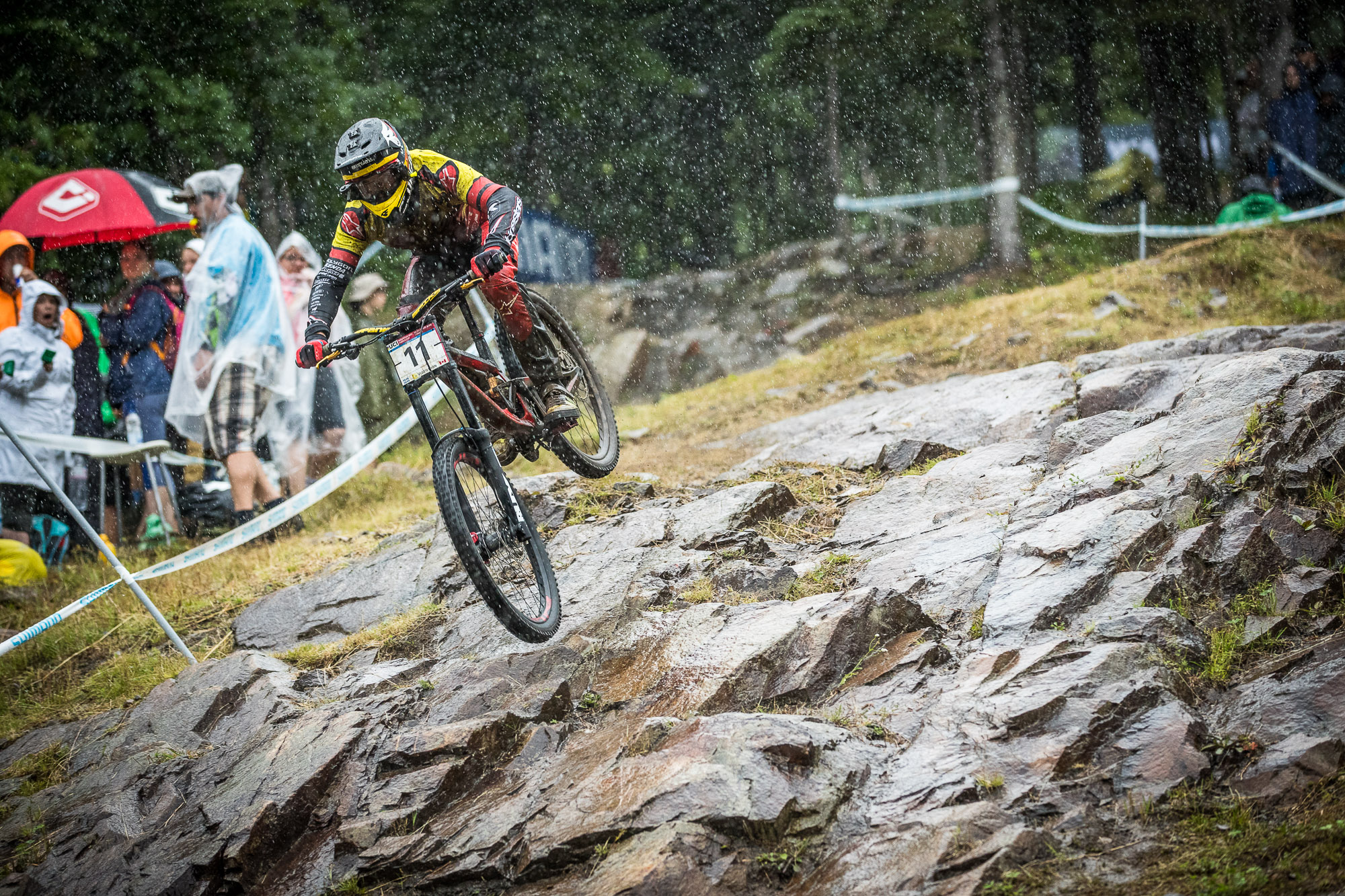 There’s nobody else in the downhill field that could win on a pedally track without a chain and there was nobody that could part the puddles like Gwin yesterday. While Gwin glided, others floundered. Minnaar was the biggest loser sliding his front wheel over the top of a berm on a supposedly safe run. He re-entered the tape wrong and was DQ’d as a result.
