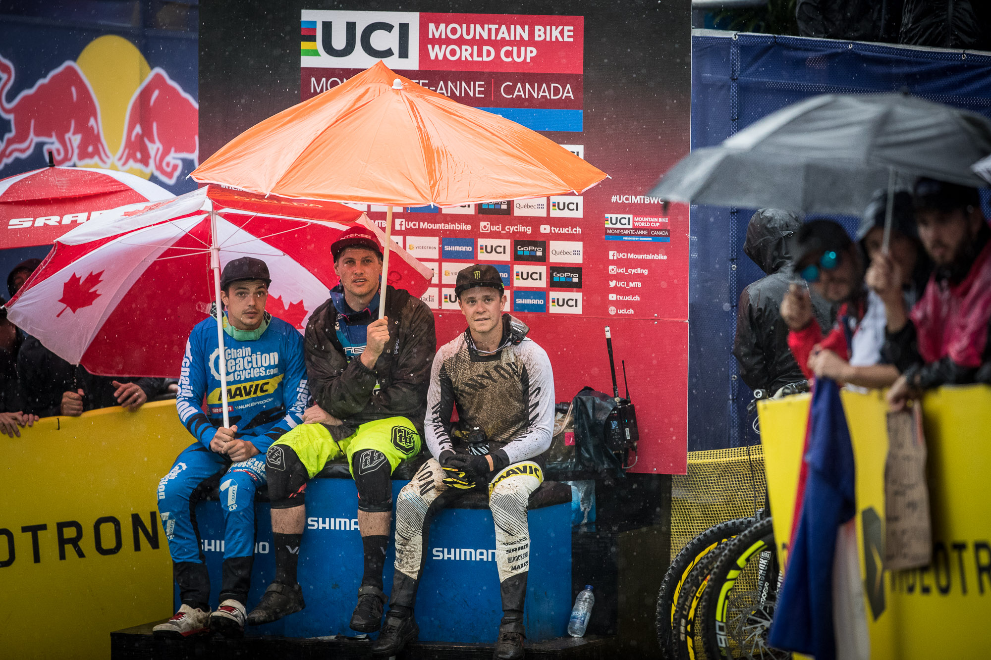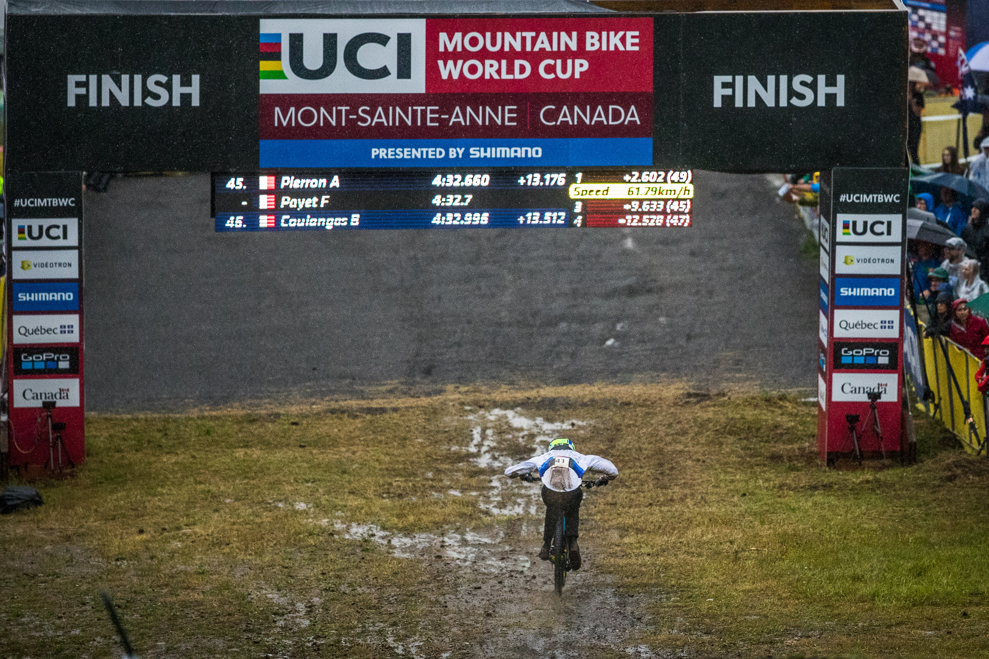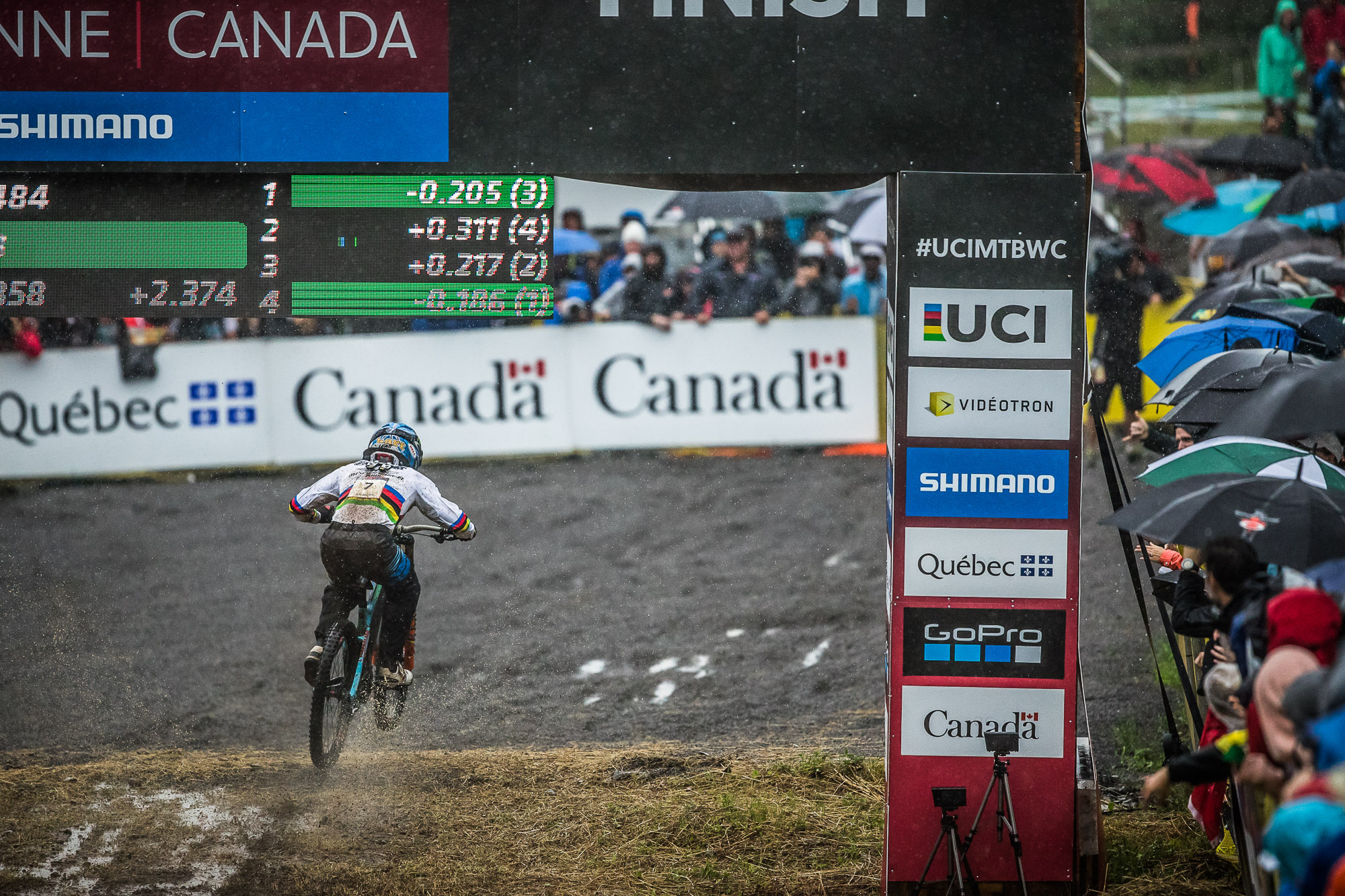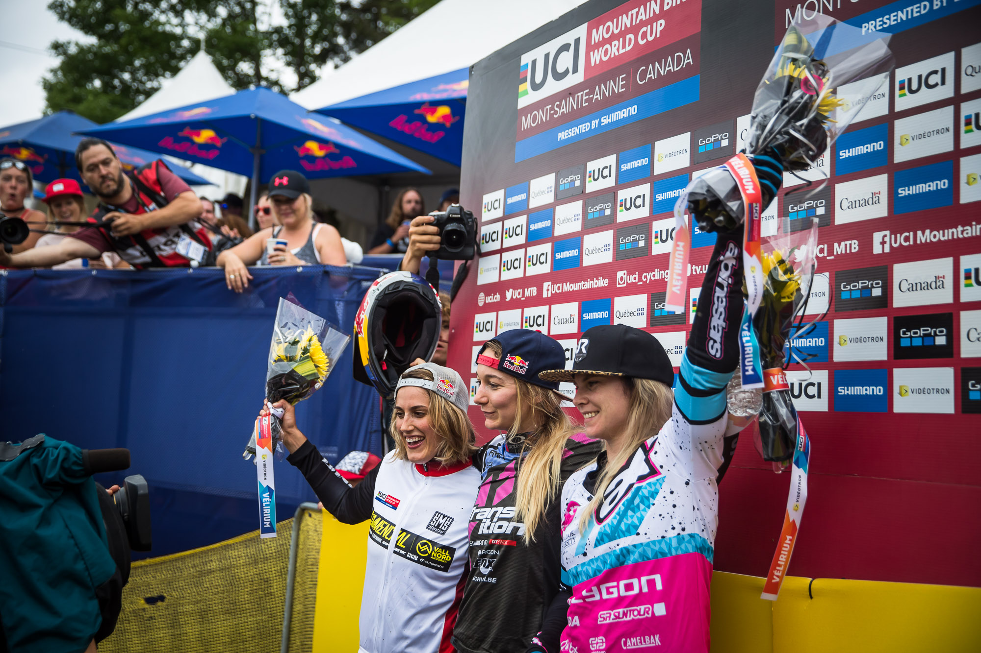 In the women’s race it was Tahnee’s turn to shine against grey Canadian skies. It was her second World Cup win and her first on a downhill track. Nicole must be starting to feel safer at the top of the standings with a 110 point buffer over Hannah heading to a track she loves but as we saw here, anything can happen.