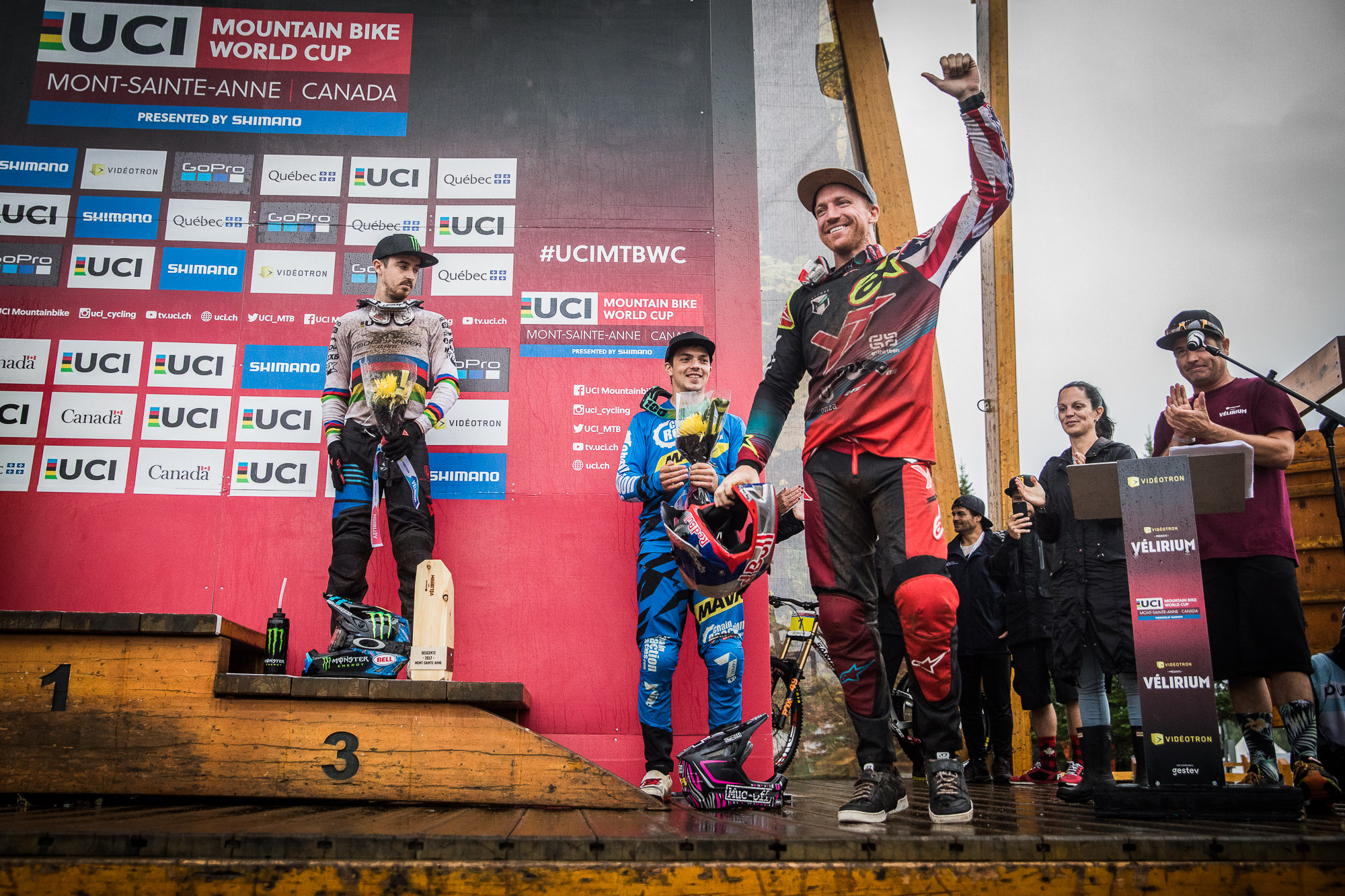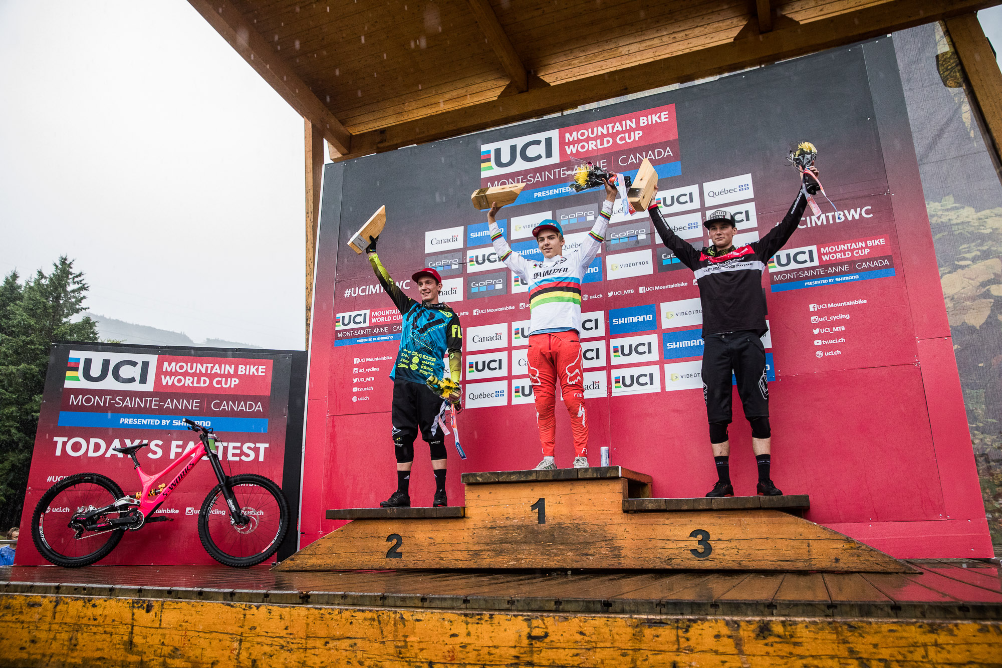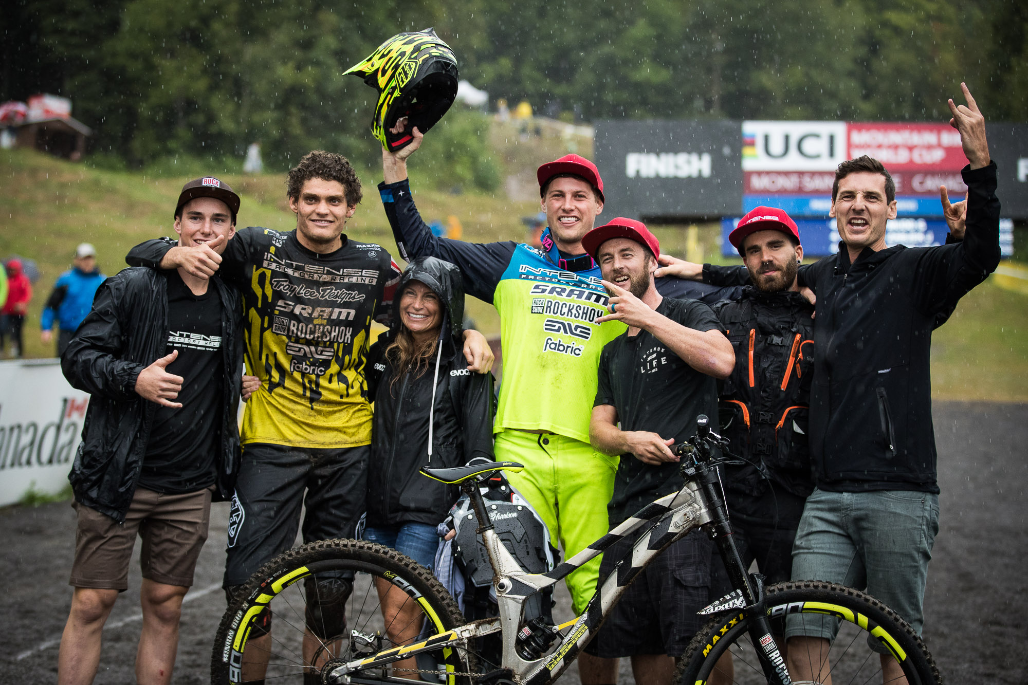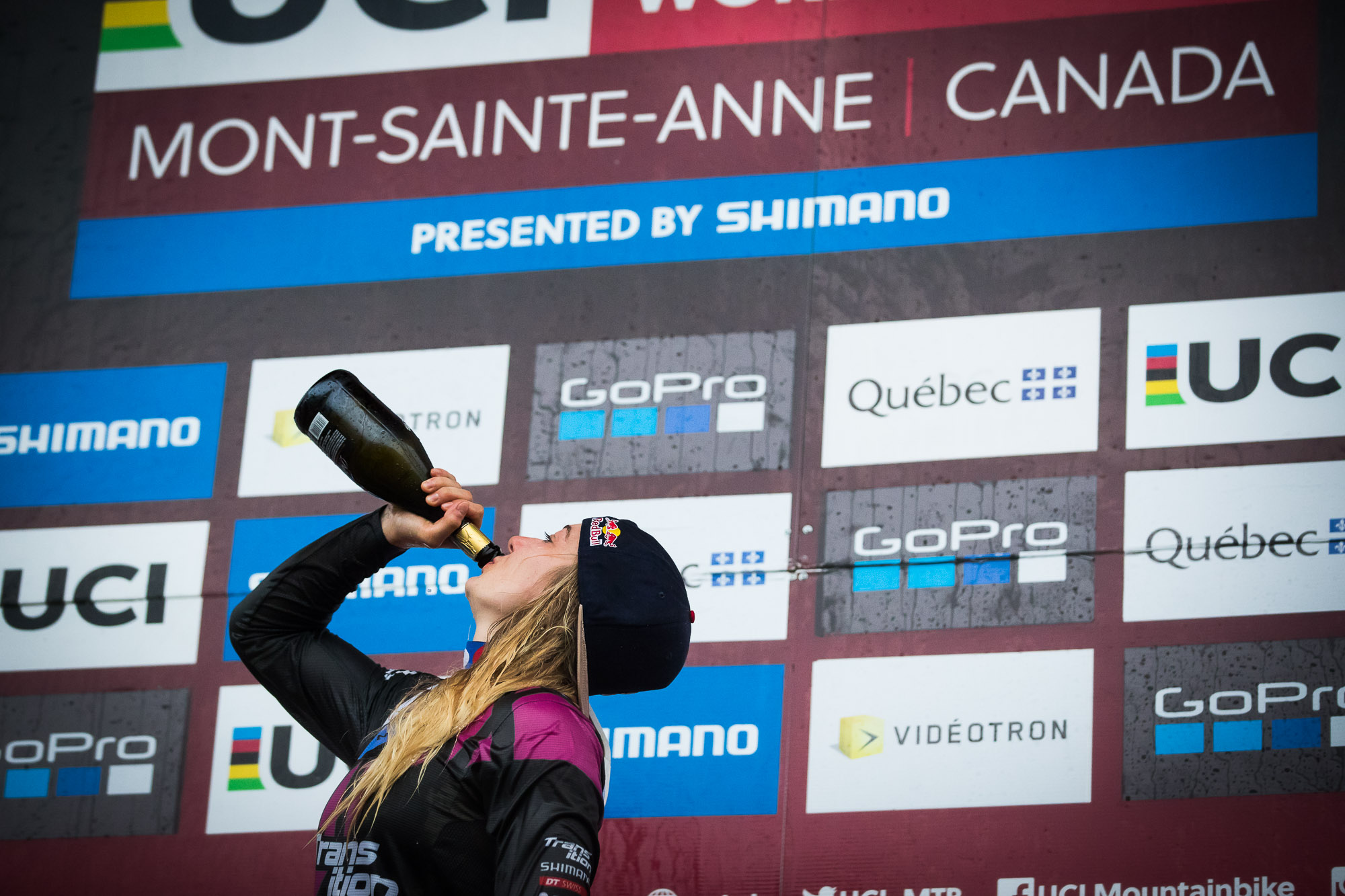 In the women’s race it was Tahnee’s turn to shine against grey Canadian skies. It was her second World Cup win and her first on a downhill track. Nicole must be starting to feel safer at the top of the standings with a 110 point buffer over Hannah heading to a track she loves but as we saw here, anything can happen.